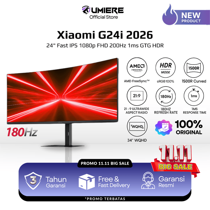 MONITOR PC XIAOMI G34WQi CURVED ULTRA WIDE QHD 180HZ 1MS MONITOR GAMING 34 IMCH GARANSI 3 TAHUN