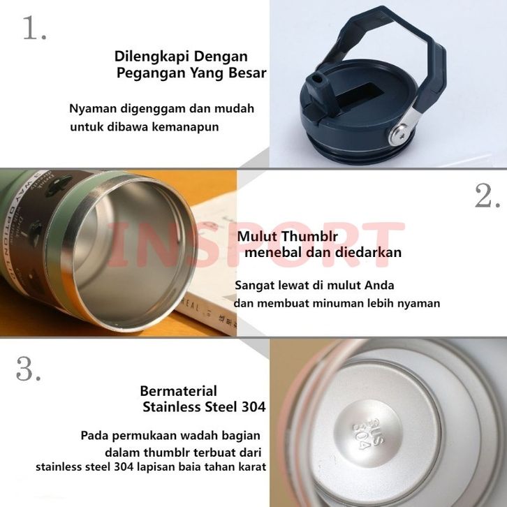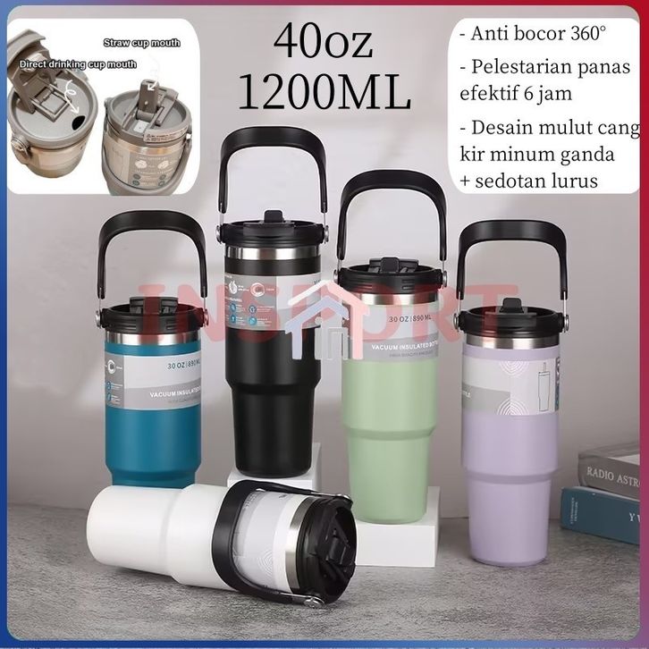 Premium tumbler handle 2in1 Kapasitas 40 oz yang besar Gagang Premium Jumbo Steel 40oz botol minum aesthetic korea