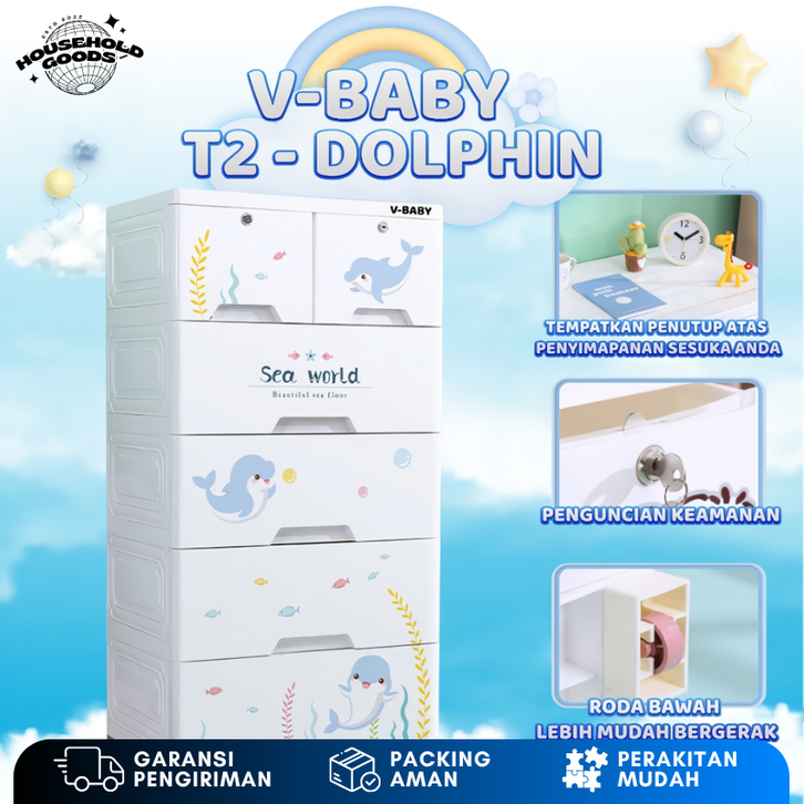 Lemari Plastik Berkualitas 2024 V-BABYCARE Karakter Anak Murah 2025 Minimalis Modern 4 Susun Jumbo Napolly Gantung