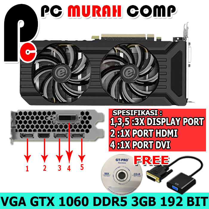 VGA CARD GEFORCE GTX 1060 3GB 6GB 8GB GAMING DDR5 NVIDIA - GTX 1060 1FAN