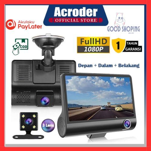 Acroder Dashcam Mobil 3 Cameras 1080P HD 4.0 Inch Night Vision Loop Recording
