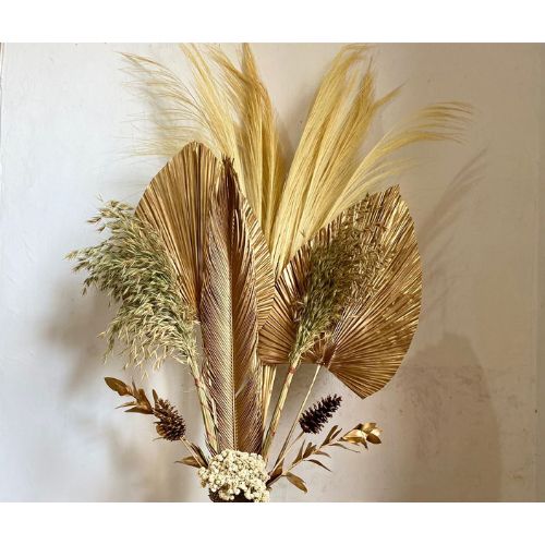 Paket Hemar Bunga Kering dan Pot Guci/Daun Palem Kering/Bunga Kering KUALITAS PREMIUM