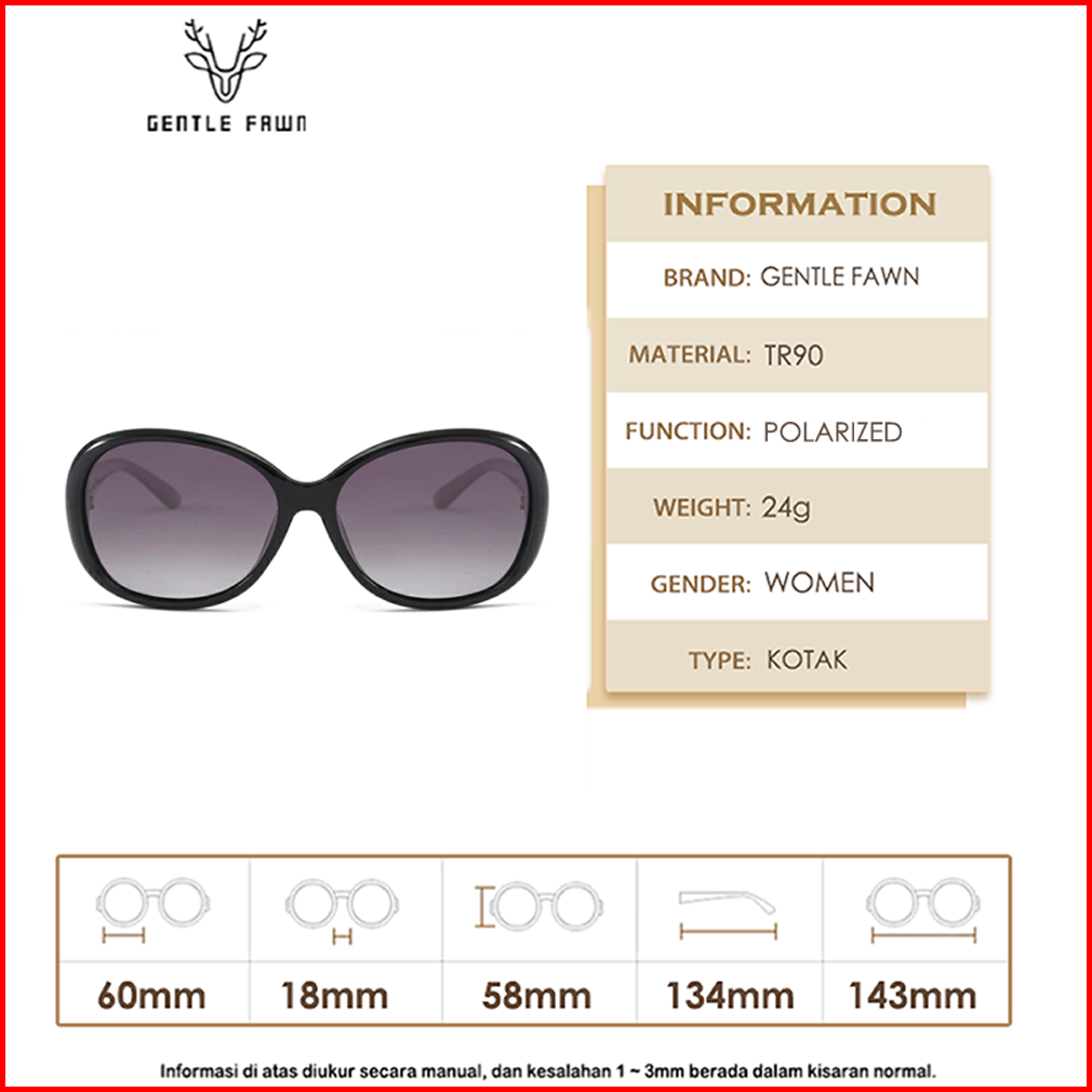 Gentle Fawn Kacamata Sunglasses Polarized Anti Uv 400 Bentuk Keren Korean Style Wanita Kotak Tr90 2115