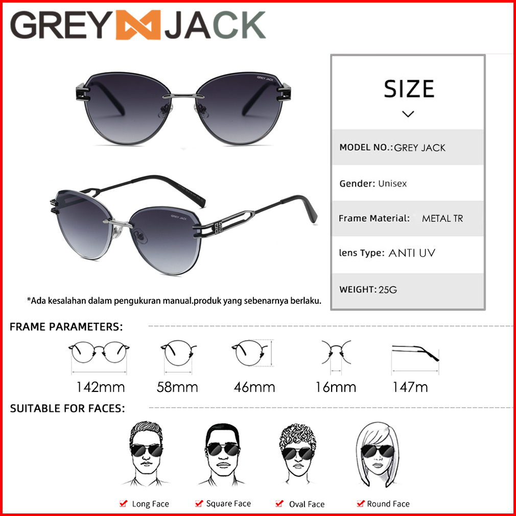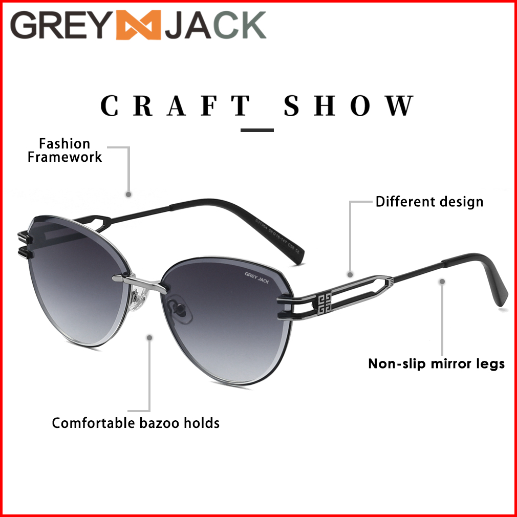 Grey Jack Kacamata Hitam Sunglasses Anti Uv400 Model Cat Eye Fashion Wanita Keren Design Unik Terbaru 31964