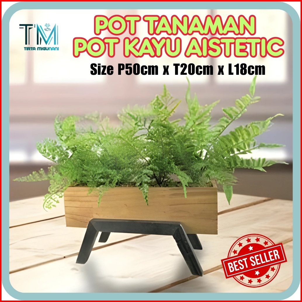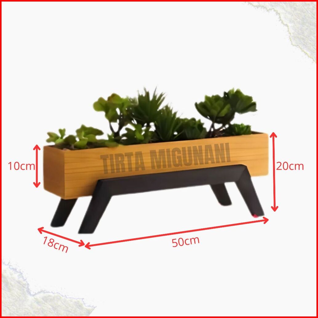 Pot Tanaman Pot Kayu Aistetic Size P50cm X T20cm X L18cm Dengan Warna Kaki-kaki Hitam Dan Box Natural