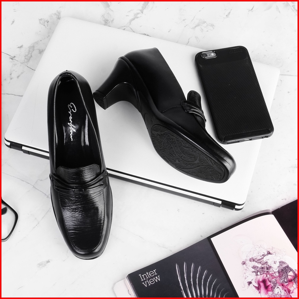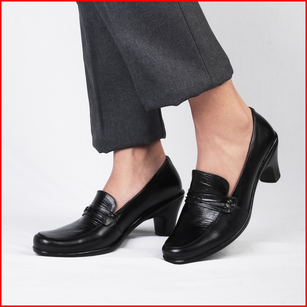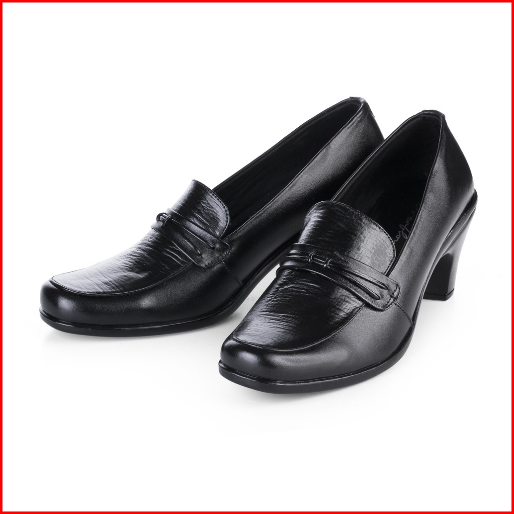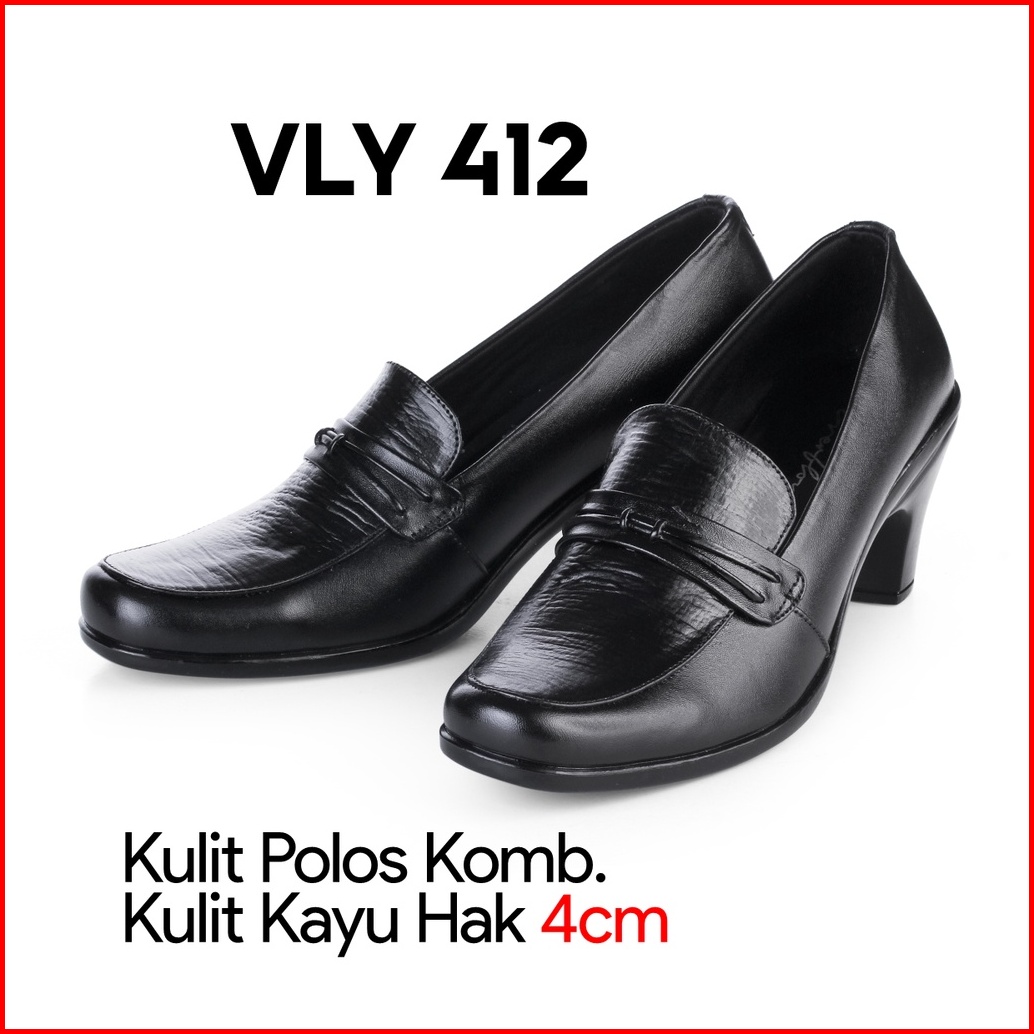 Sepatu Pantofel Wanita Kerja Kantoran Kulit Asli Hak 4cm Vly 412 Hitam