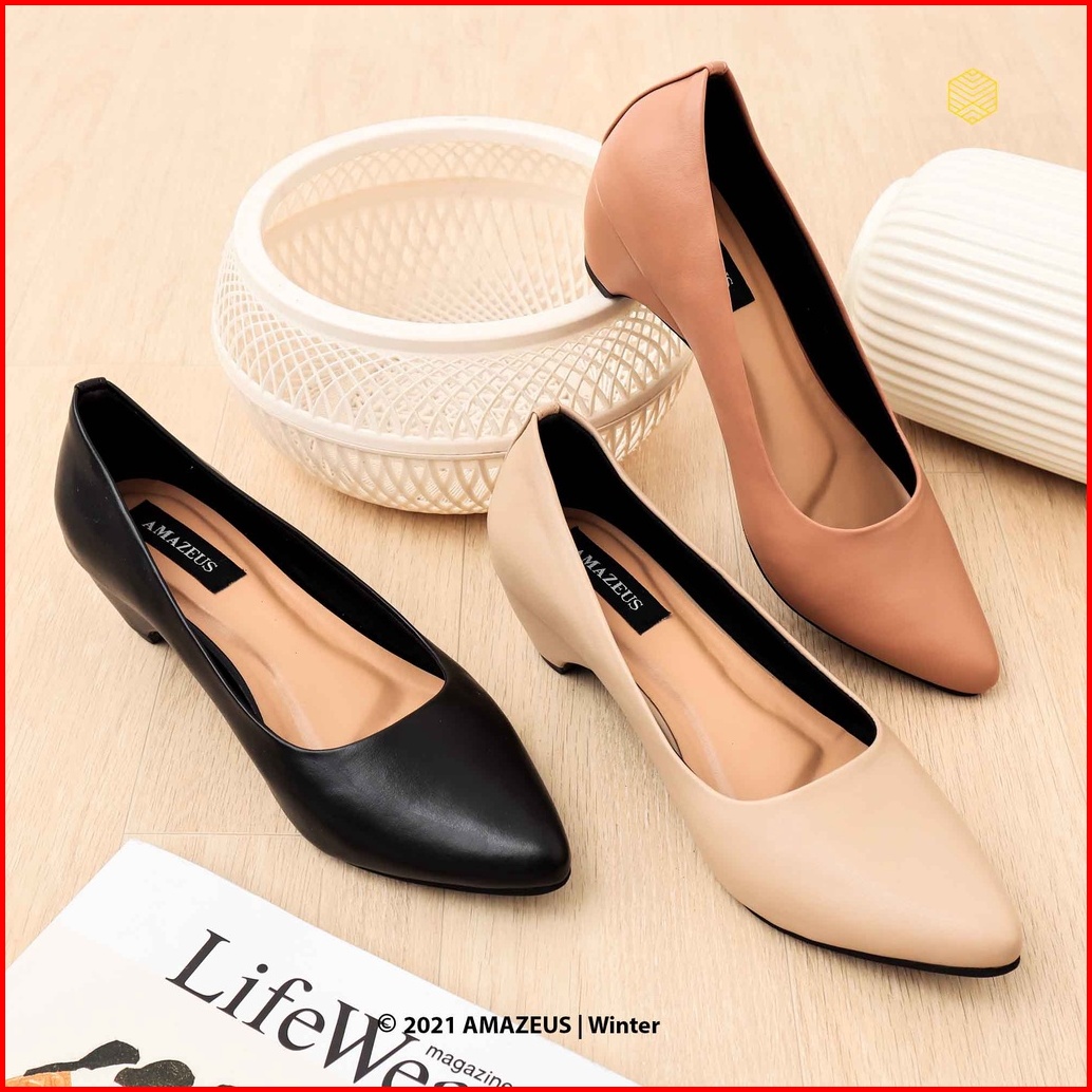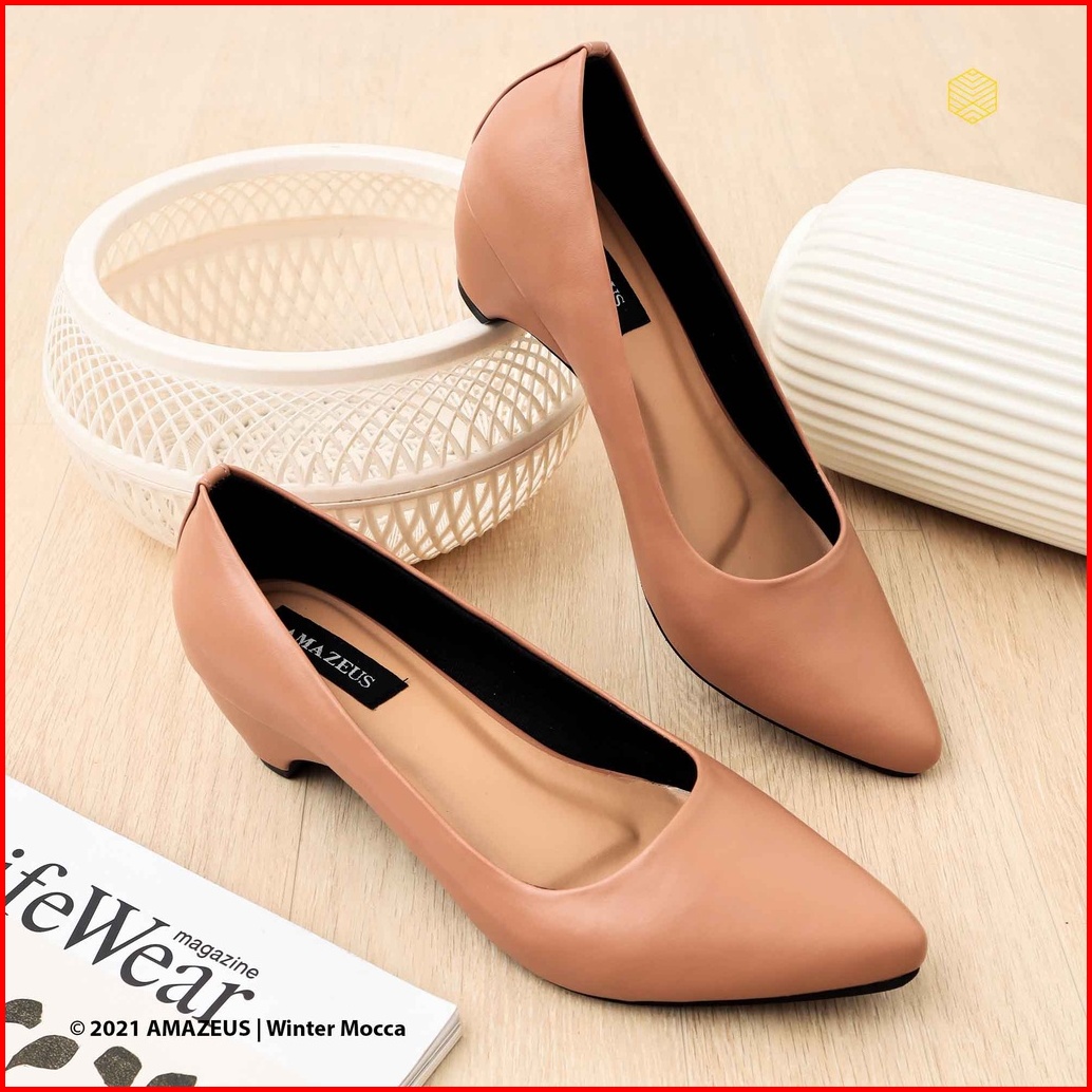 Amazeus Winter Sepatu Kerja Wanita Pantopel Heels 3 Cm