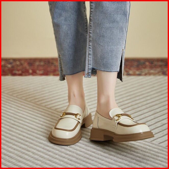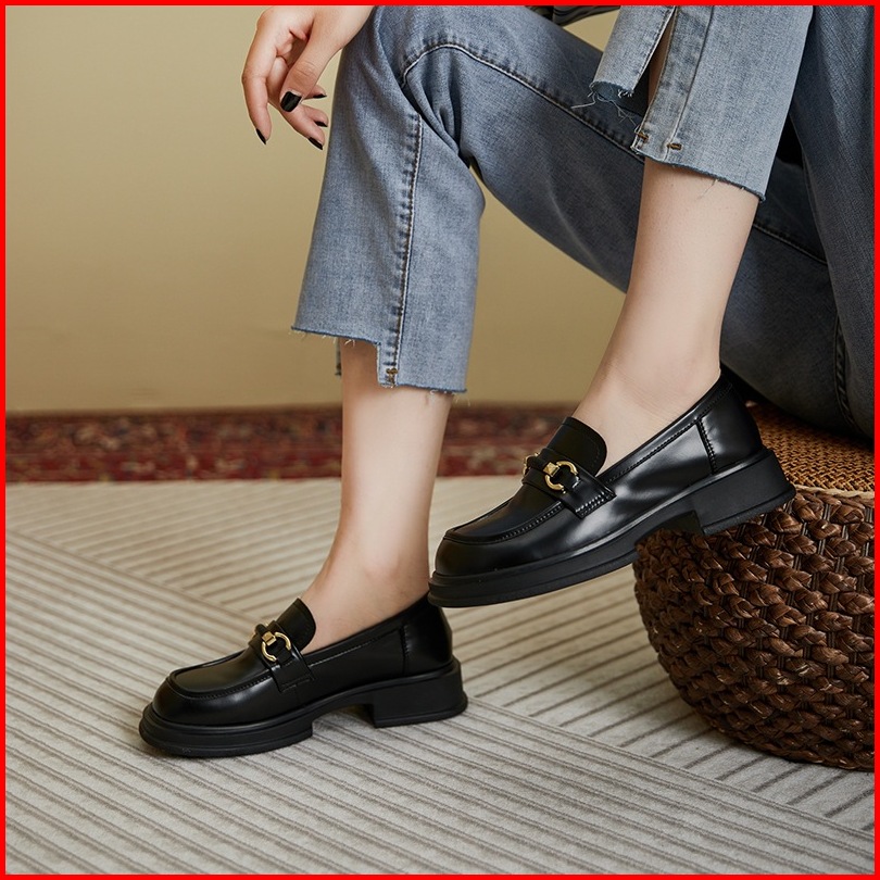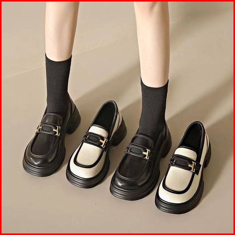 Findal Sepatu Loafers Wanita Platform Shoes Buckle Hak Chunky Karet Ki-092