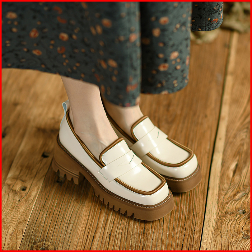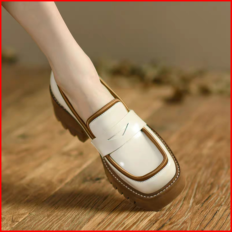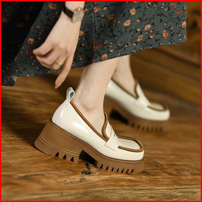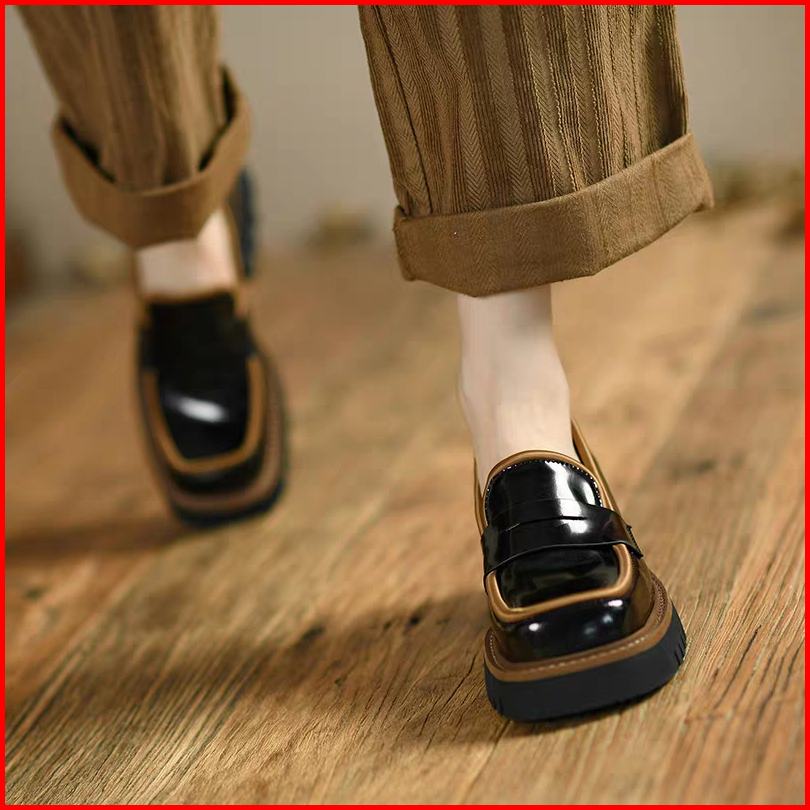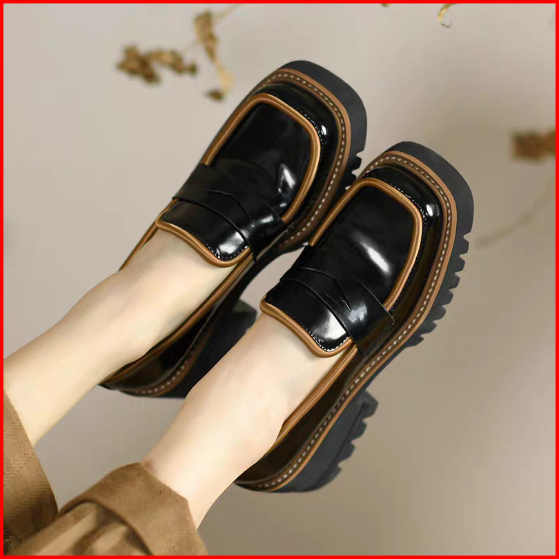 Sepatu Loafers Wanita Hitam Sol Tebal Elegan Stylish Kekinian