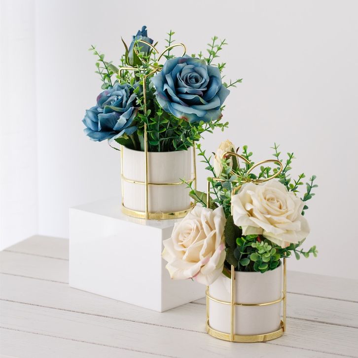 Eyre Nordic simulasi bunga set keramik KUNING vas mawar simulasi tanaman pot dekorasi rumah palsu pot bunga Nordic