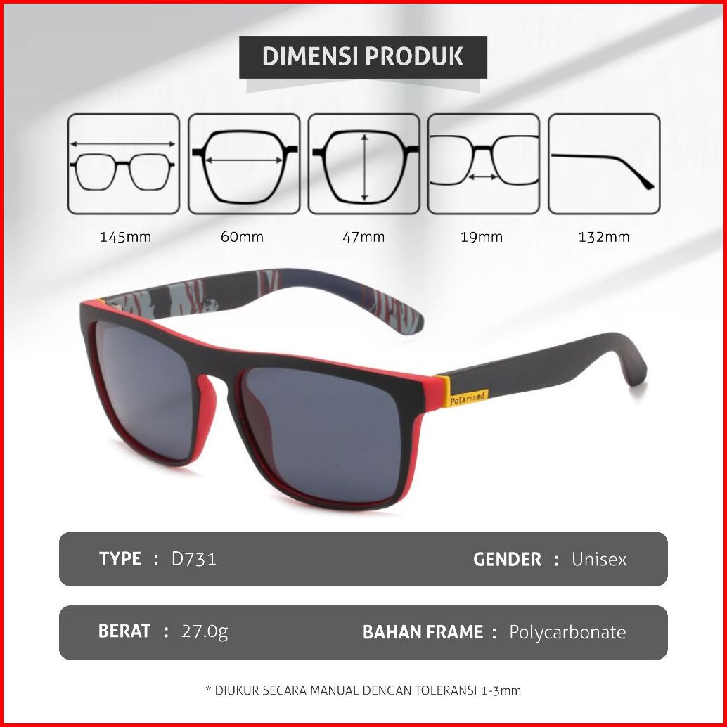 Colore.in Kacamata Hitam Sunglasses Polarized Uv400 Kotak Fashionable Pria Wanita Pc Tr-90 D731