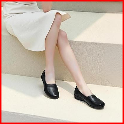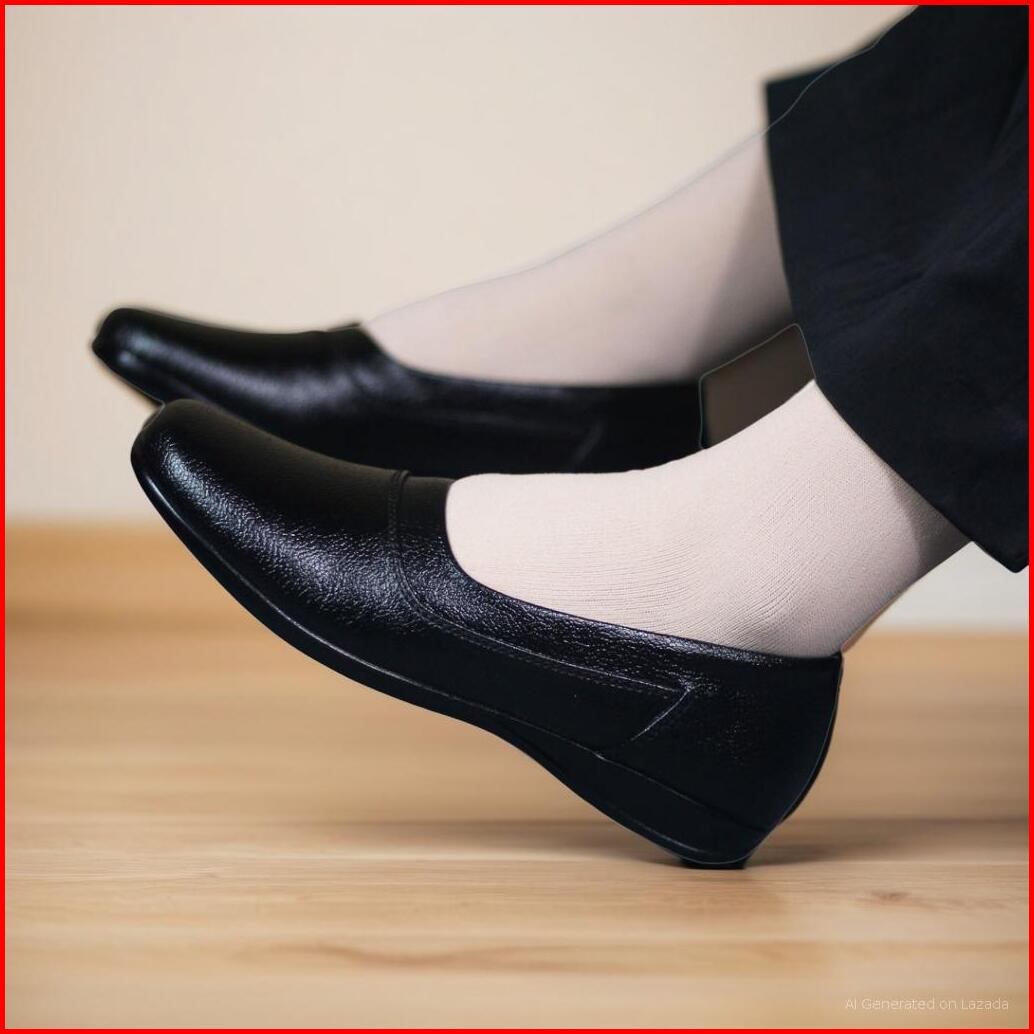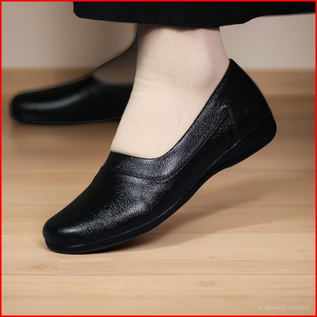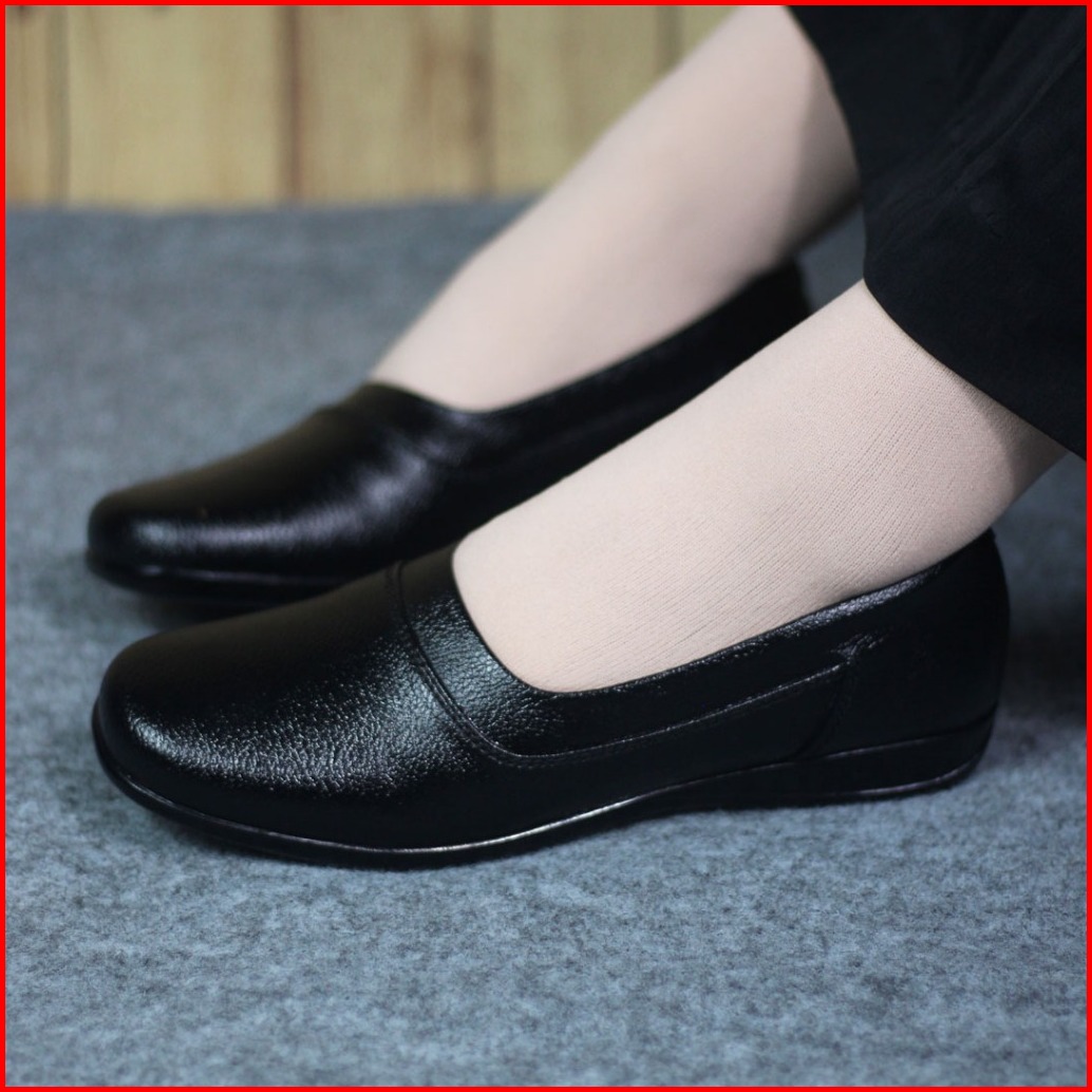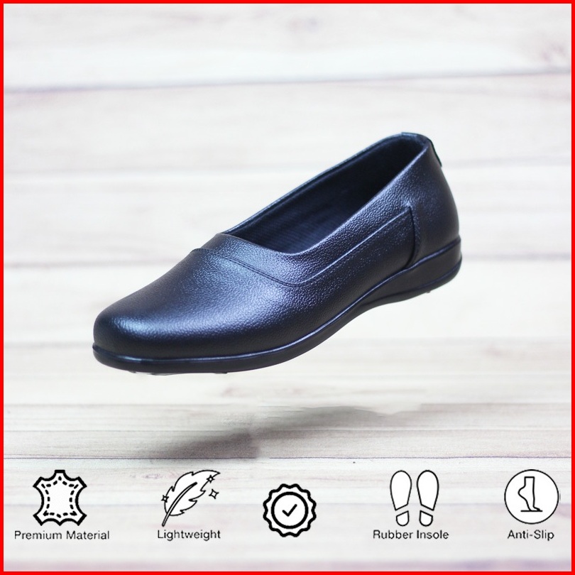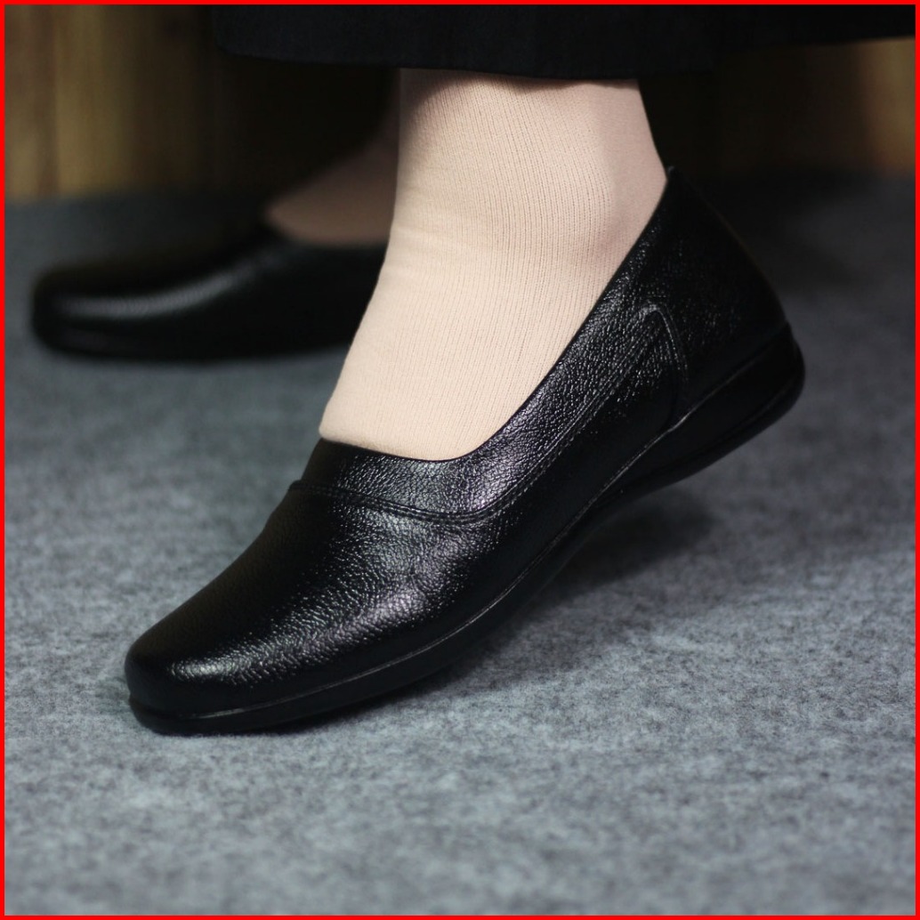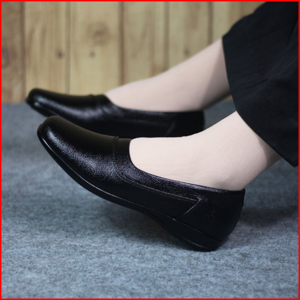 Lika Kartini - Sepatu Pantofel Kulit Wanita Slip On Hitam Formal Kerja Hak 3cm Big Size 36 - 43
