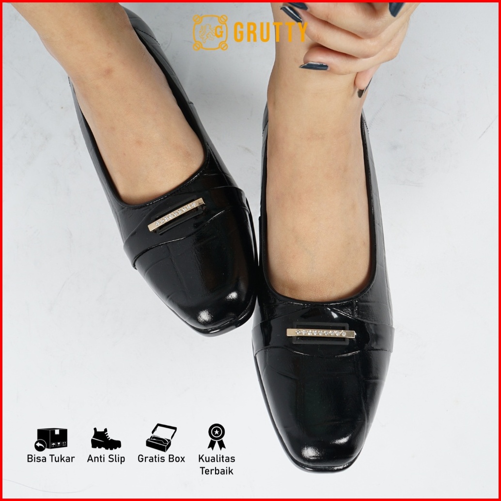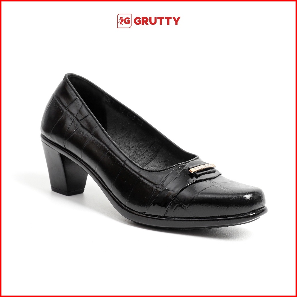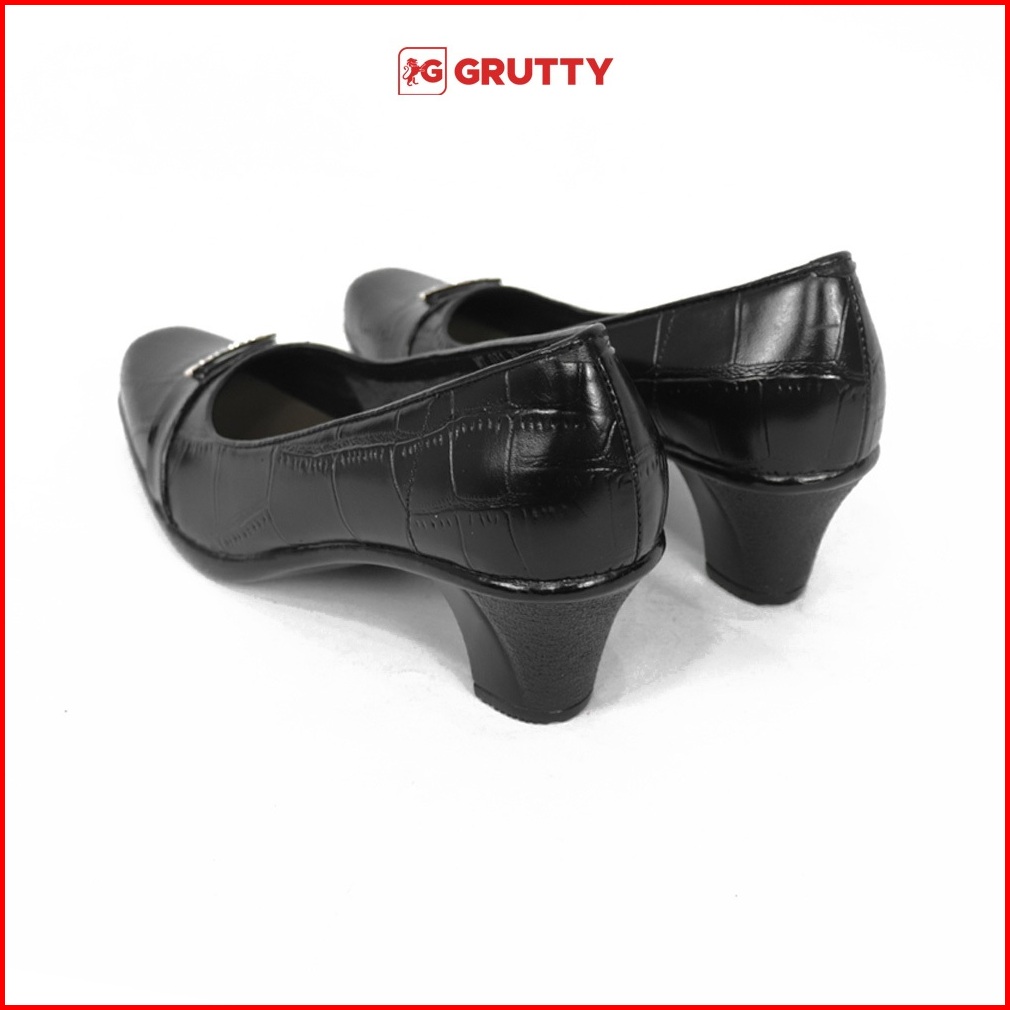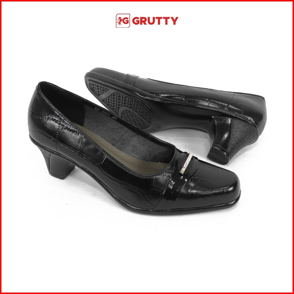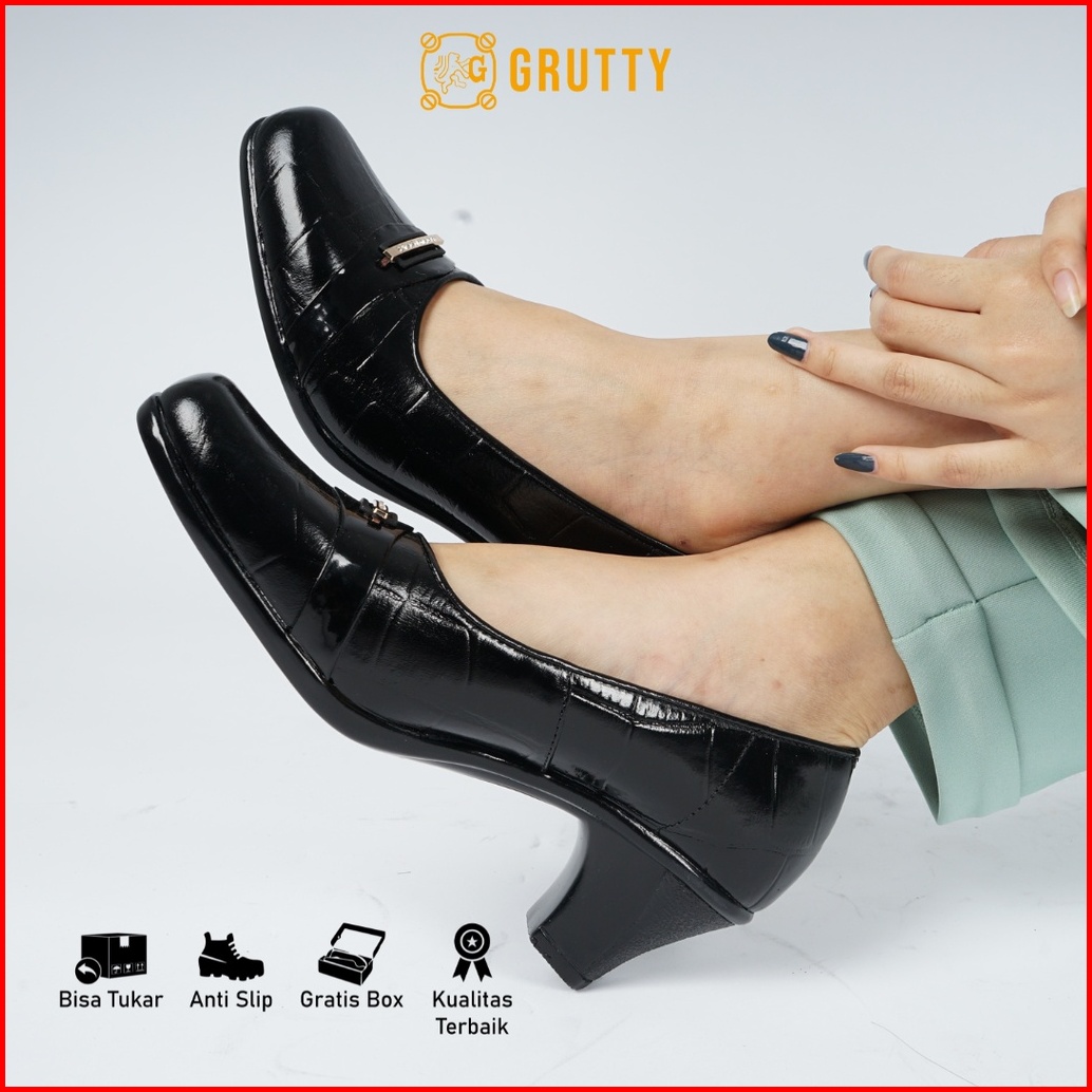 Sepatu Wanita Formal Pantofel Kerja Heels Kulit Grutty Dc031 Hitam
