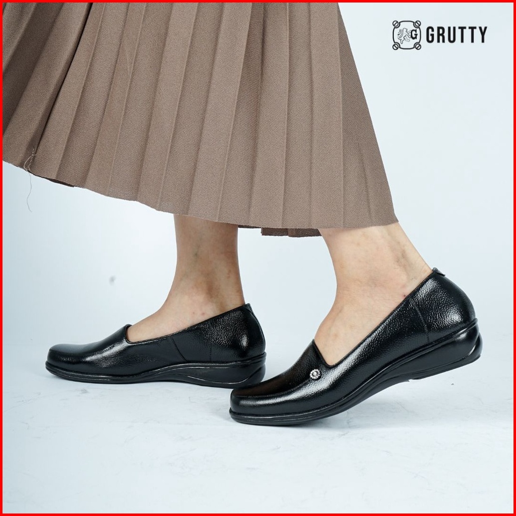 Sepatu Pantofel Wanita Kulit Pantopel Kantor Formal Original Grutty-in016 Hitam