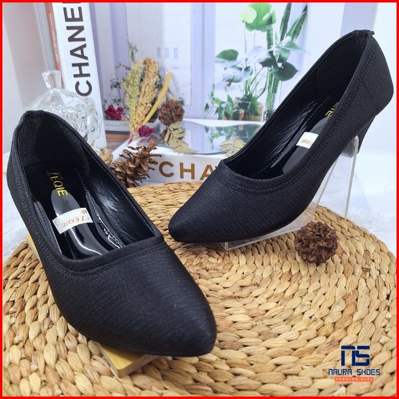 Naura Shoes Sandal Dan Sepatu Wanita Dewasa Kanzia Sb23 Pantofel Slip On Guru Kerja Kantoran Hitam Hak 5cm Kekinian Terb