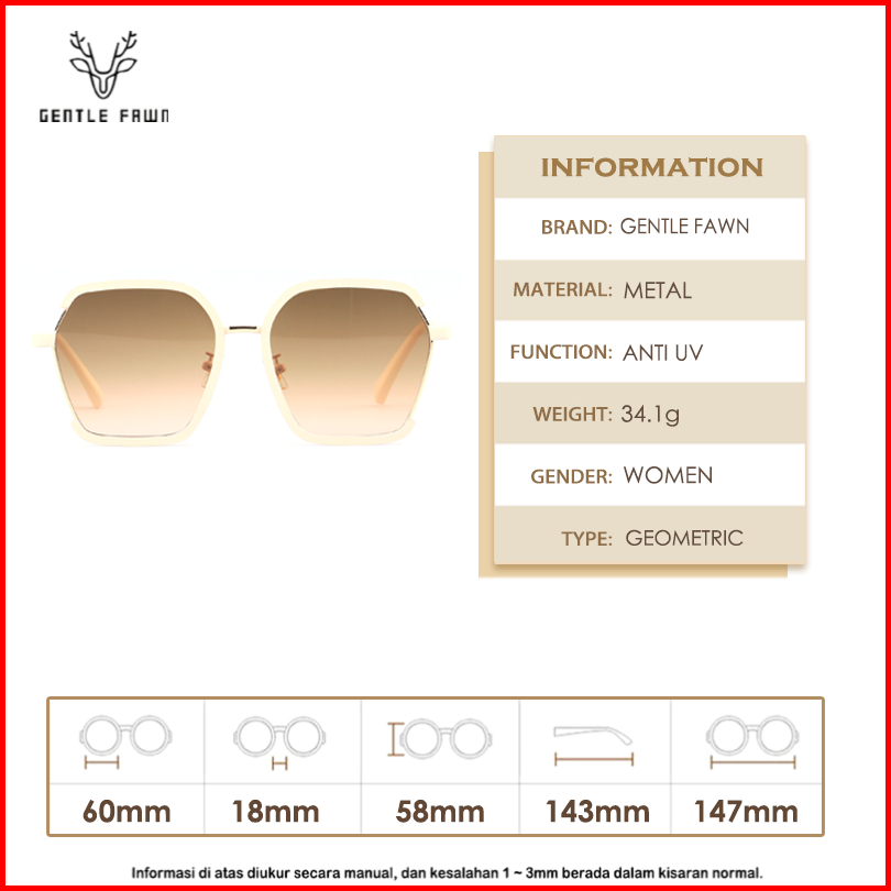 Gentle Fawn Kacamata Sunglasses Anti Uv Silau Matahari Bentuk Kotak Oversized Korean Style Fashion Wanita Bahan Metal Ku