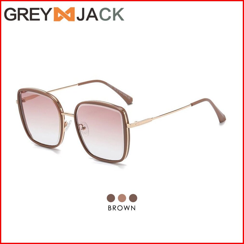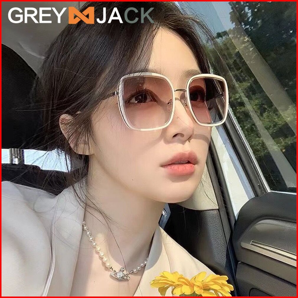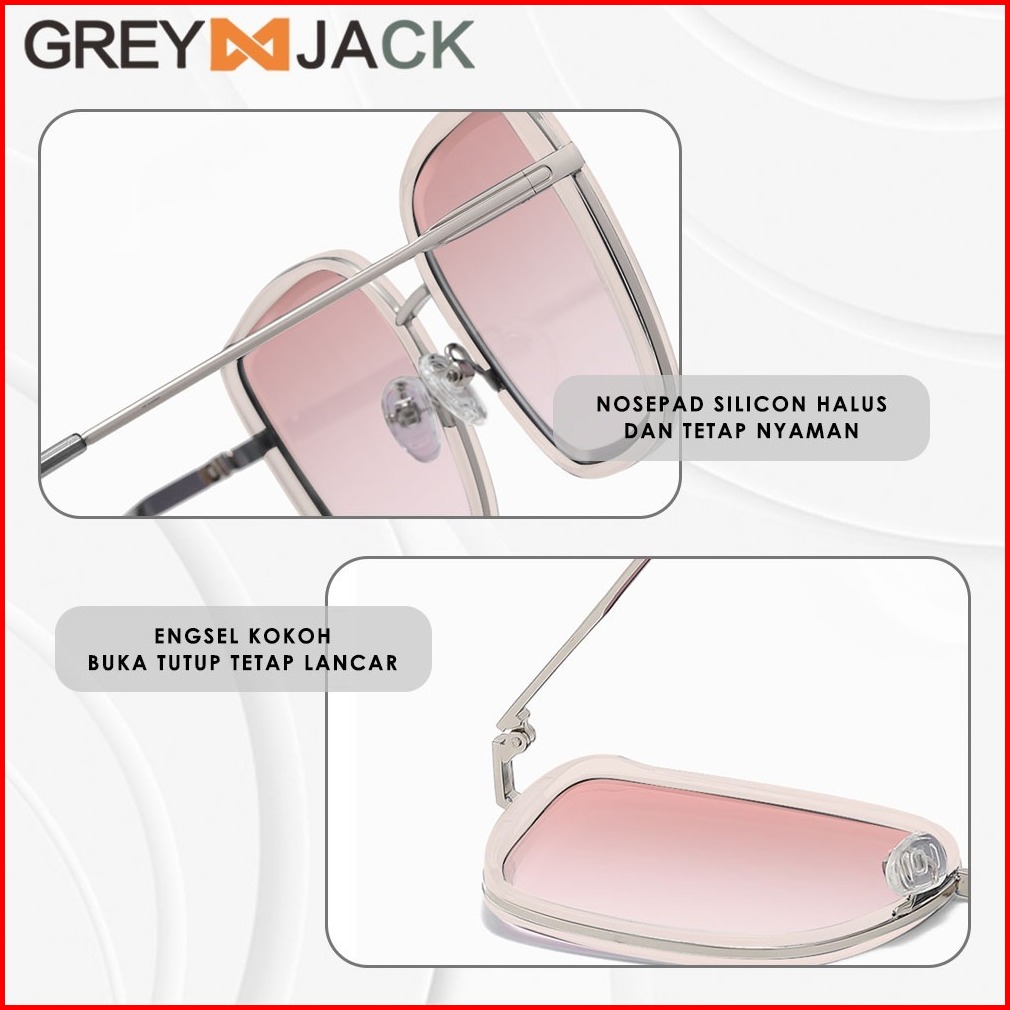 Grey Jack Kacamata Hitam Sunglasses Anti Uv400 Model Kotak Oversized Fashion Wanita Bahan Metal Ringan Kekinian 23022