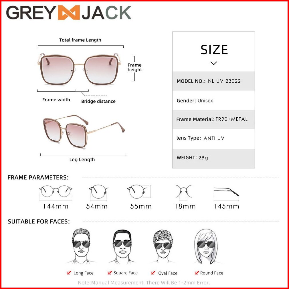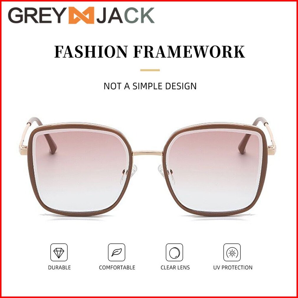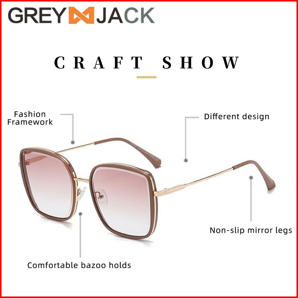 Grey Jack Kacamata Hitam Sunglasses Anti Uv400 Model Kotak Oversized Fashion Wanita Bahan Metal Ringan Kekinian 23022