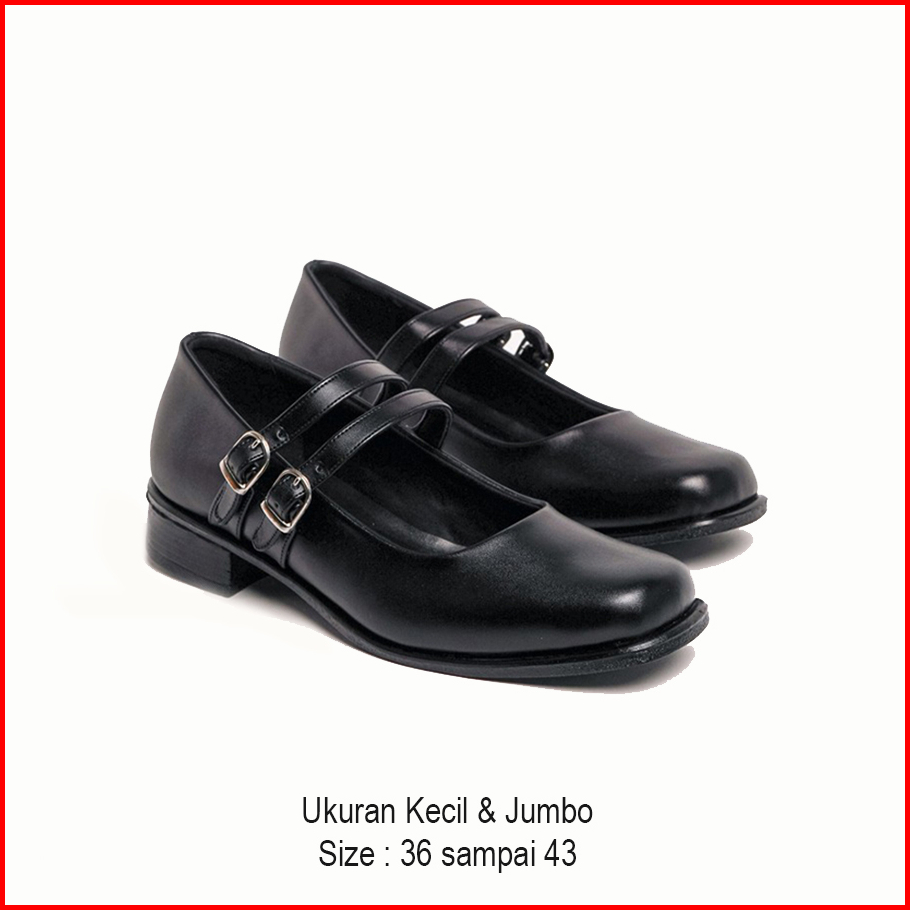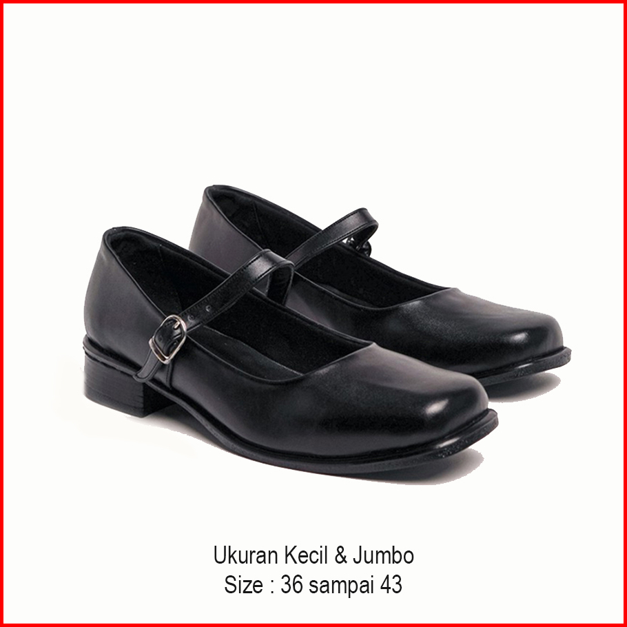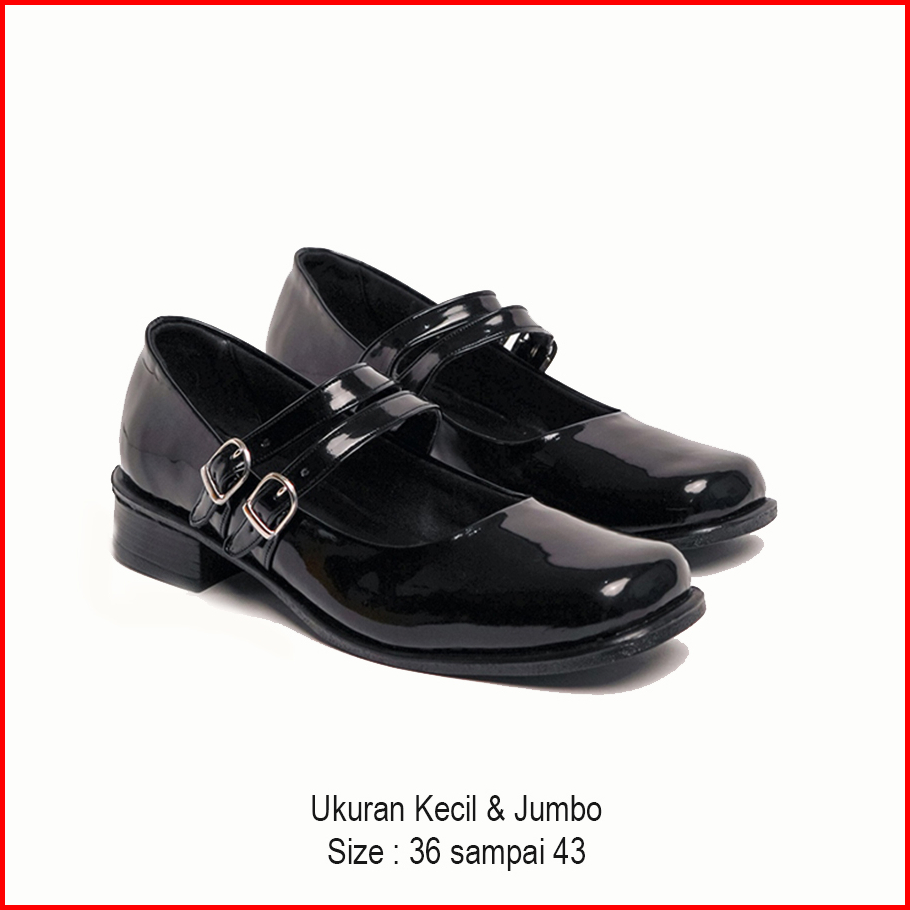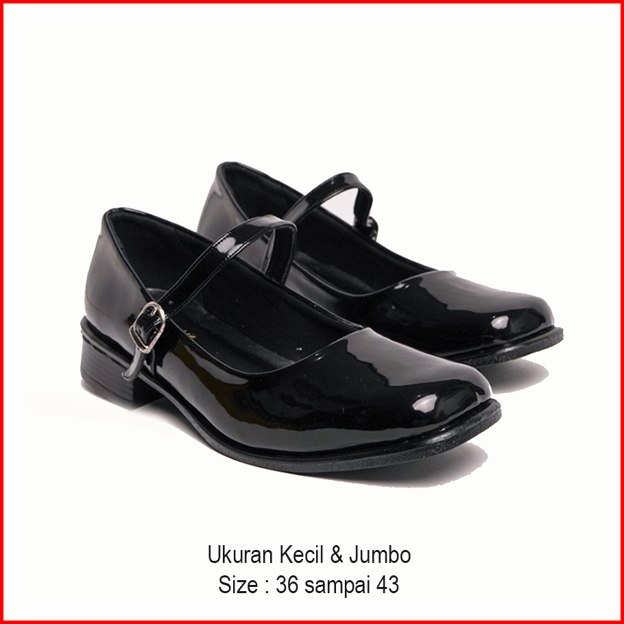 Big Size 36 - 43 Sepatu Wanita Pantofel Paskibra Jumbo Hak 3 Cm Hitam Kilap Tali Satu