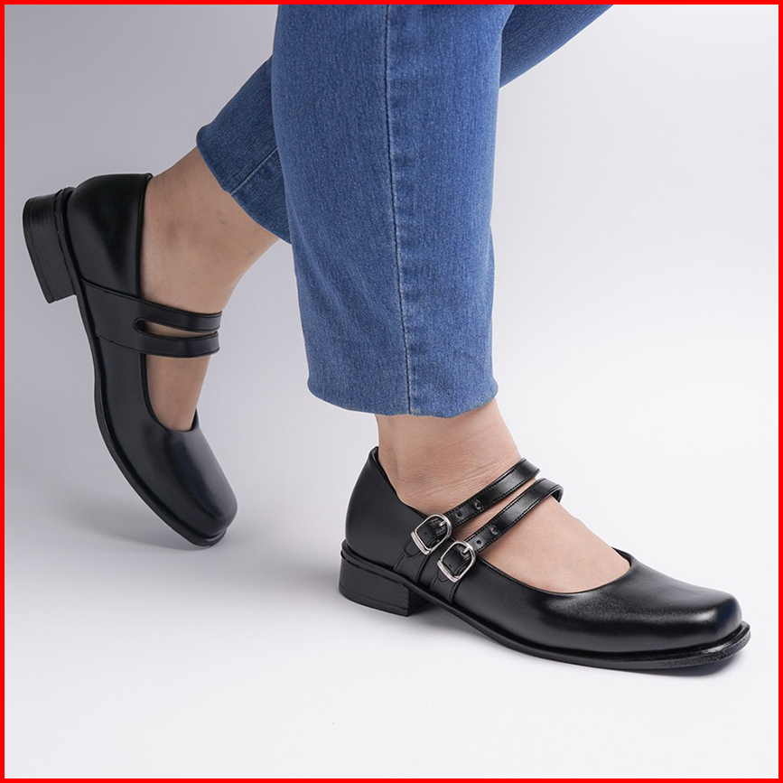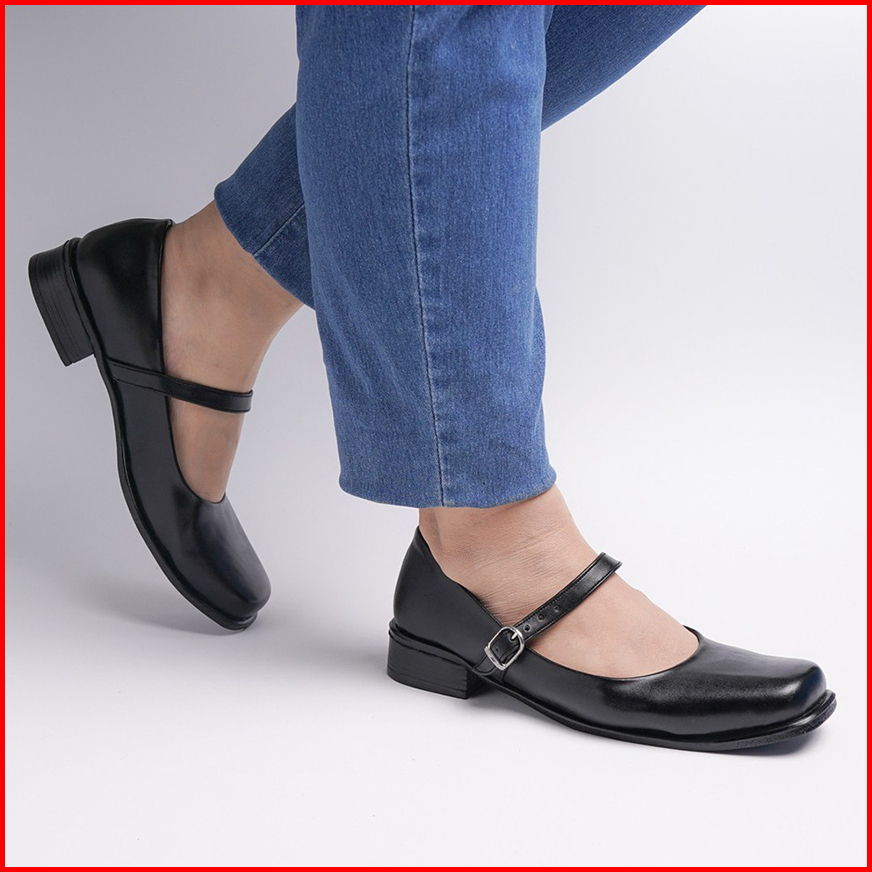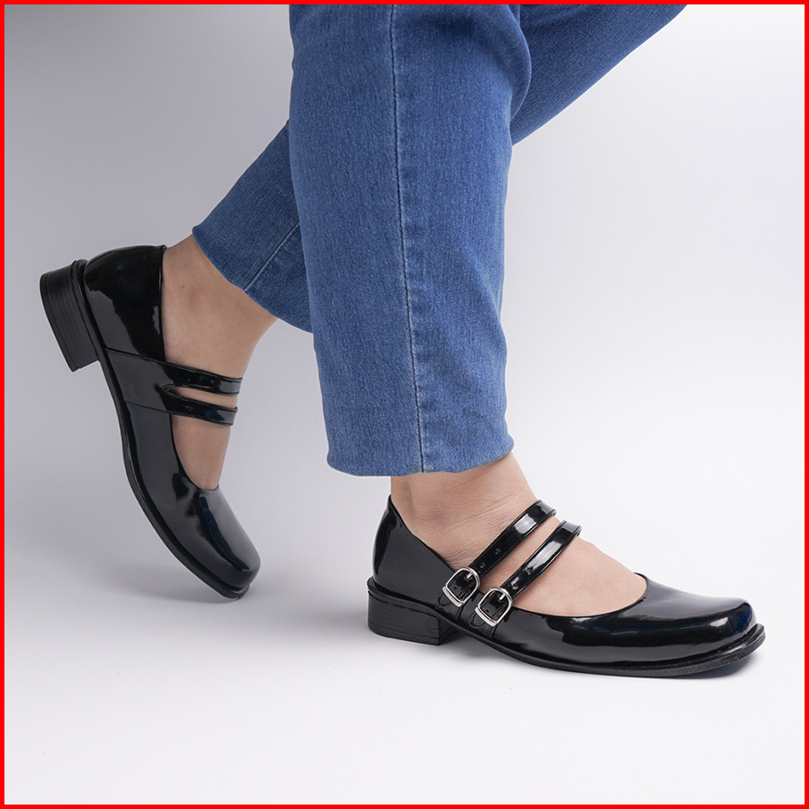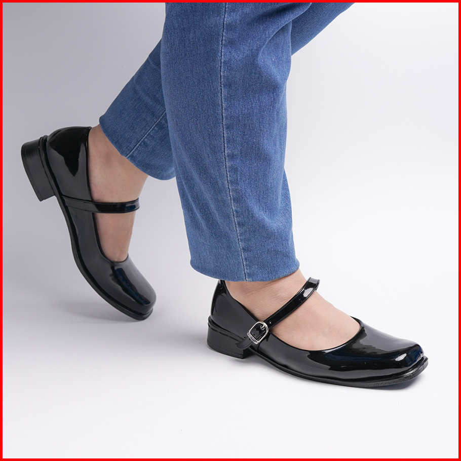 Big Size 36 - 43 Sepatu Wanita Pantofel Paskibra Jumbo Hak 3 Cm Hitam Kilap Tali Satu