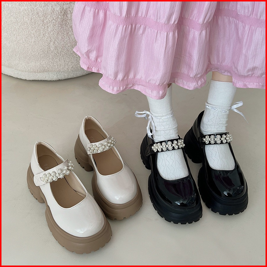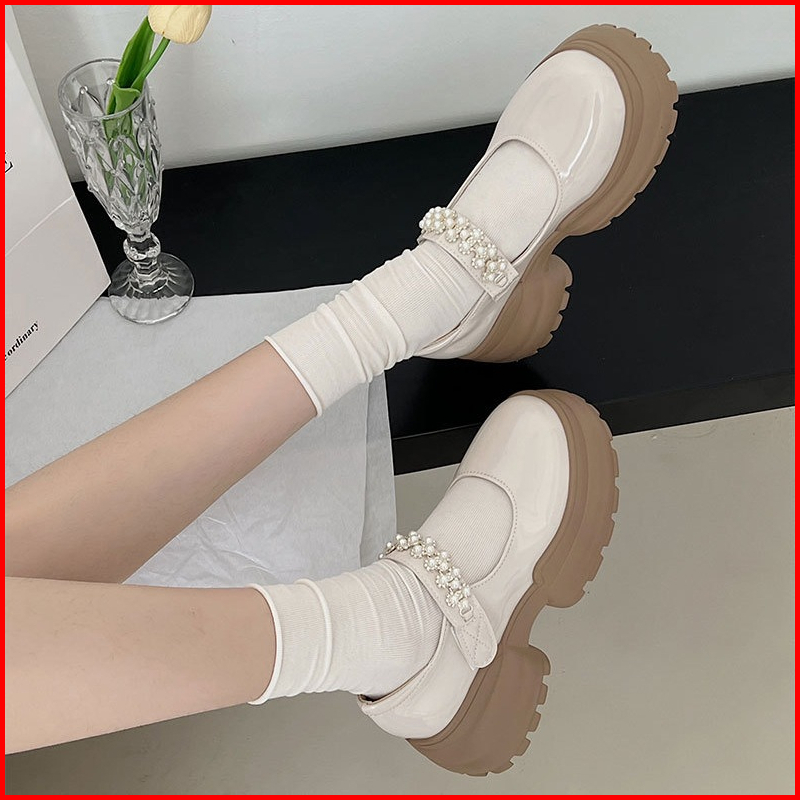 Sepatu Wanita Kasual Korean Style Docmart Perempuan Mutiara Cantik Mary Jane Cewek Jalan Outdoor Terbaru Sk-077