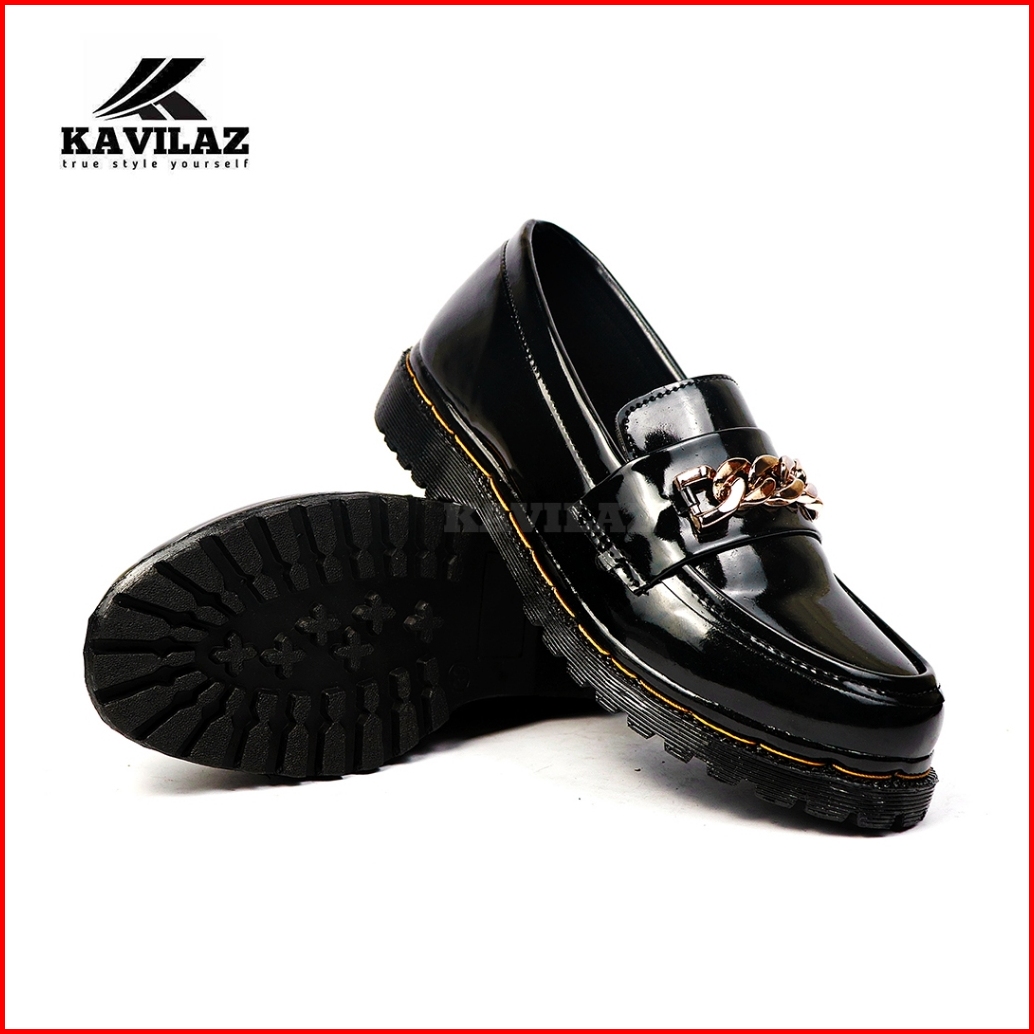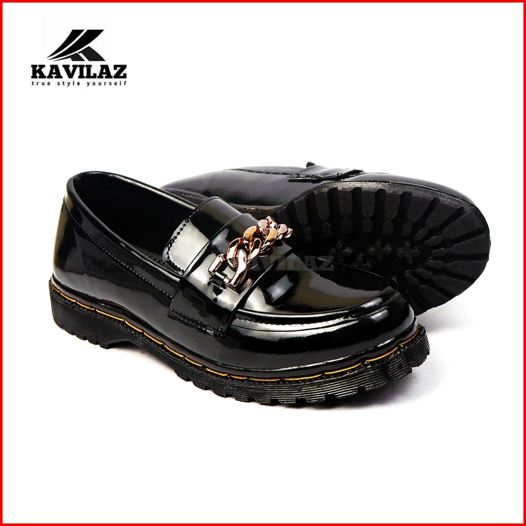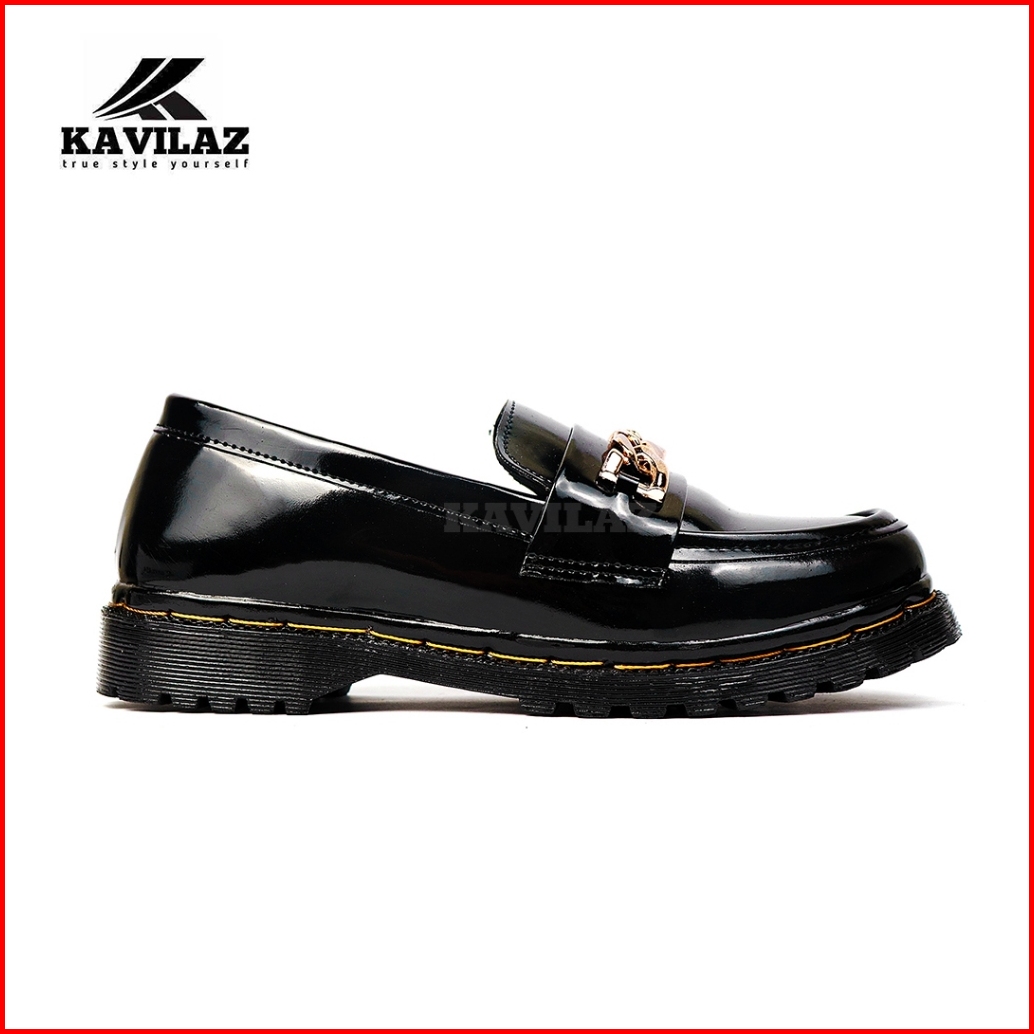 Kavilaz True Style Yourself Sepatu Wanita Flat Loafer Docmart Black Glossy Kode Z13