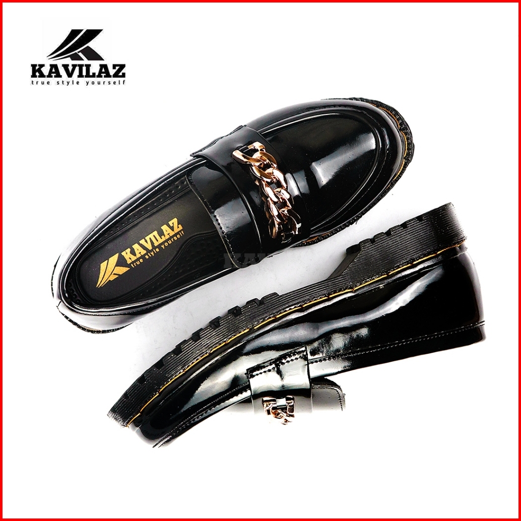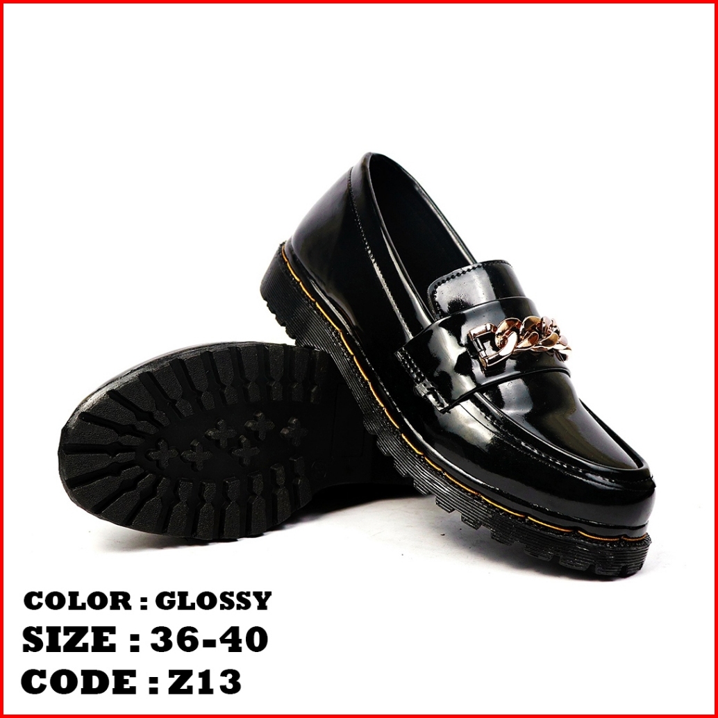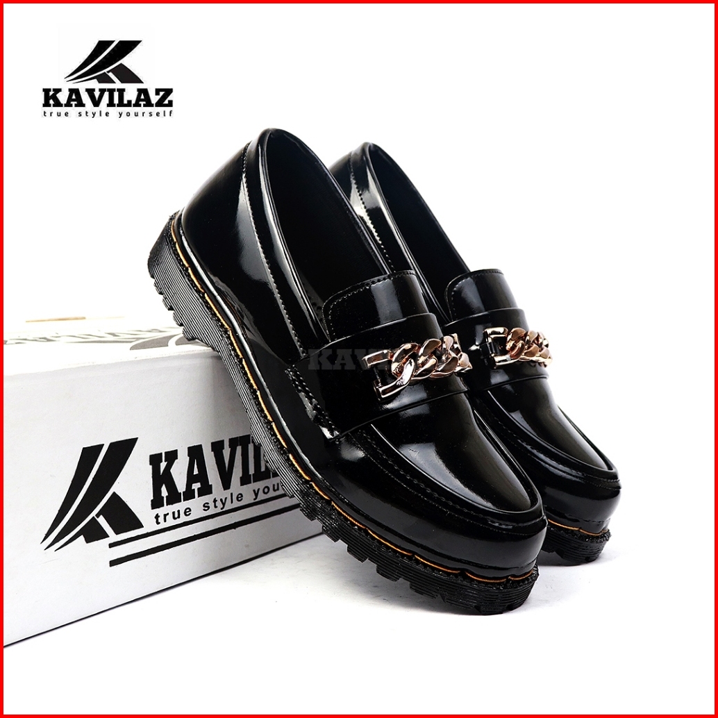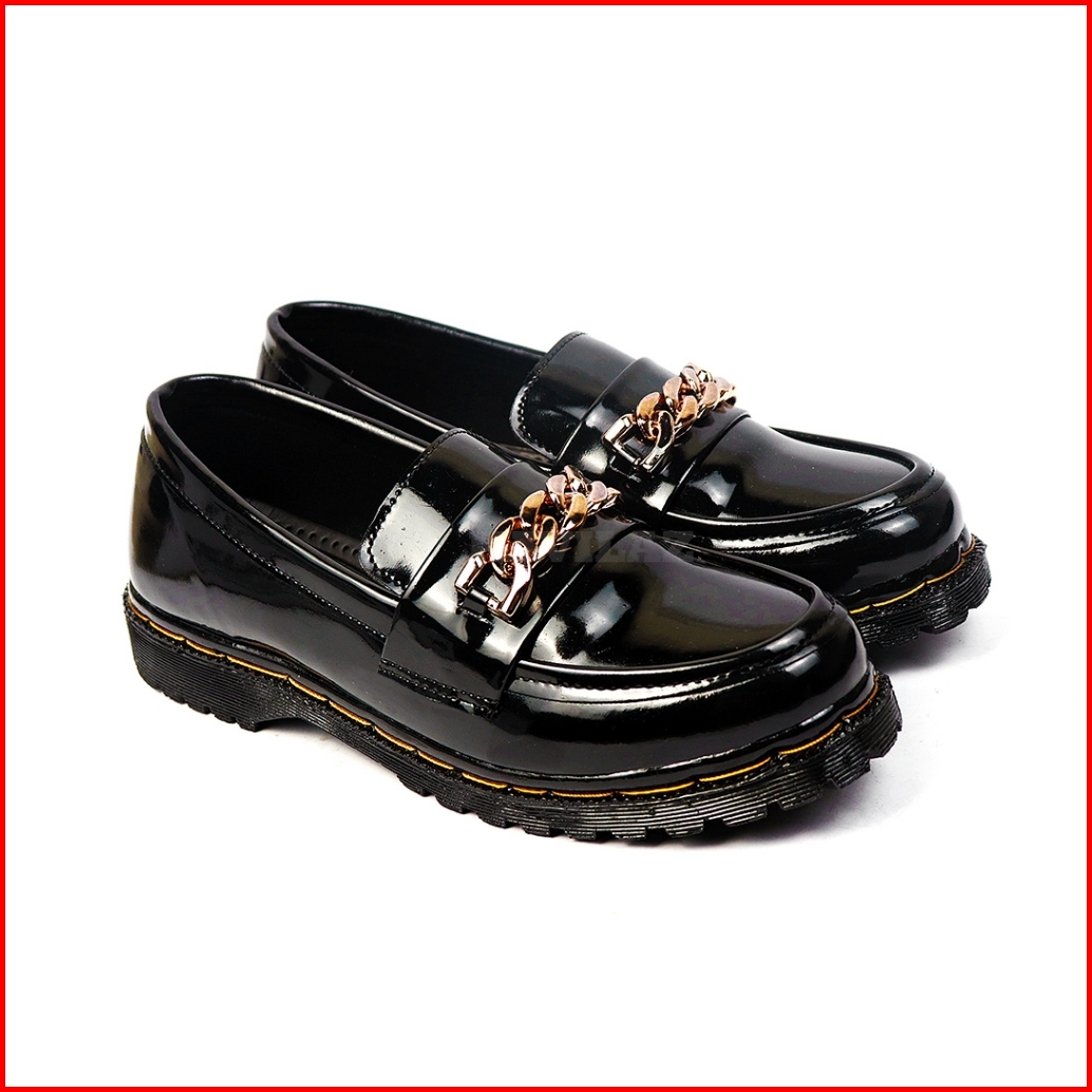 Kavilaz True Style Yourself Sepatu Wanita Flat Loafer Docmart Black Glossy Kode Z13