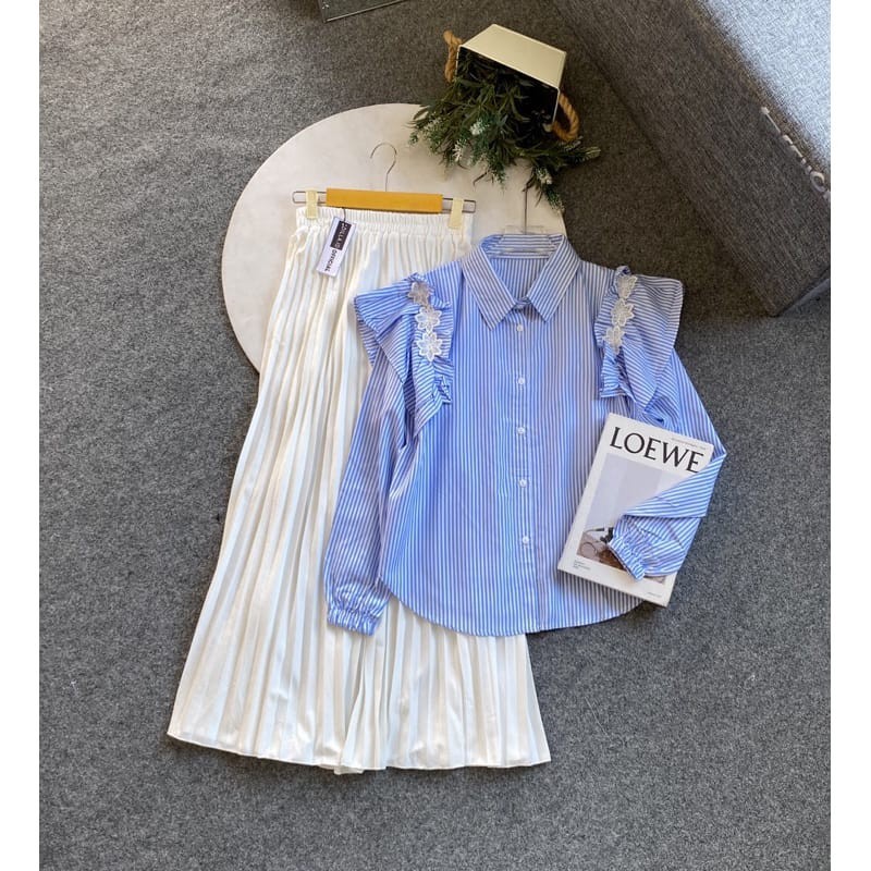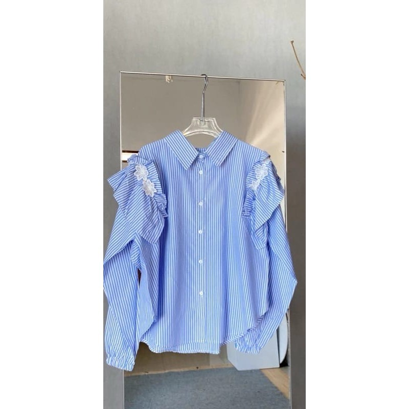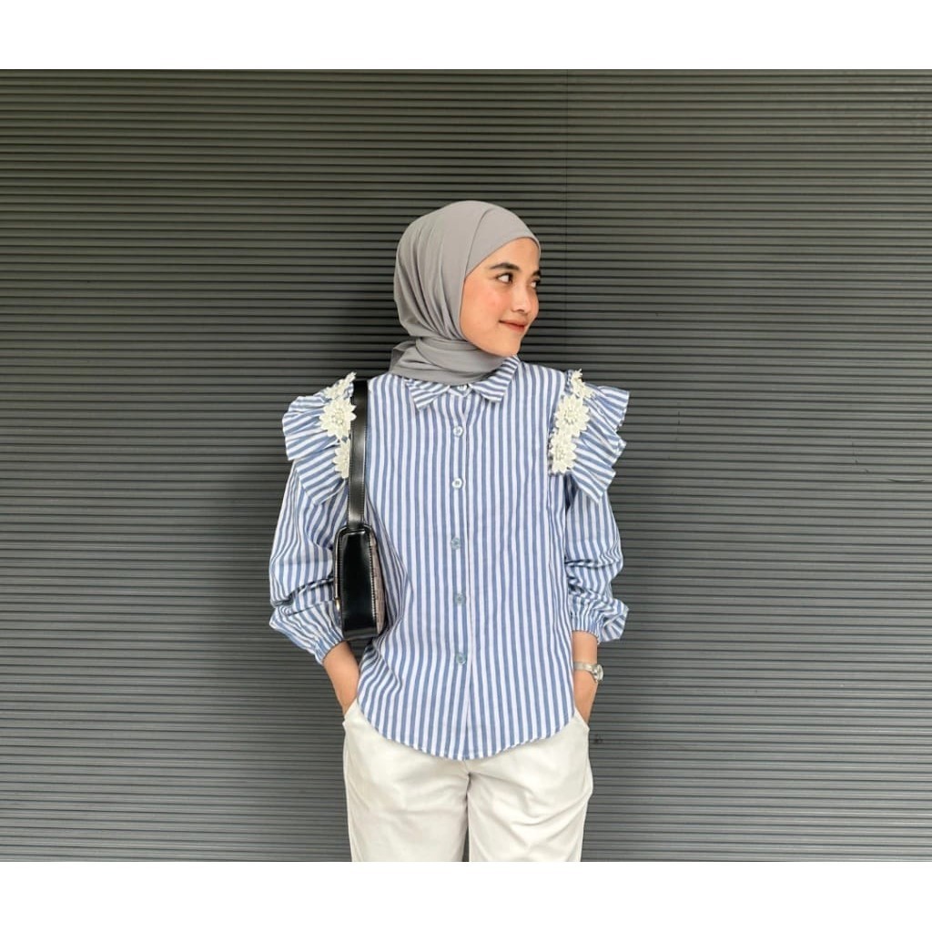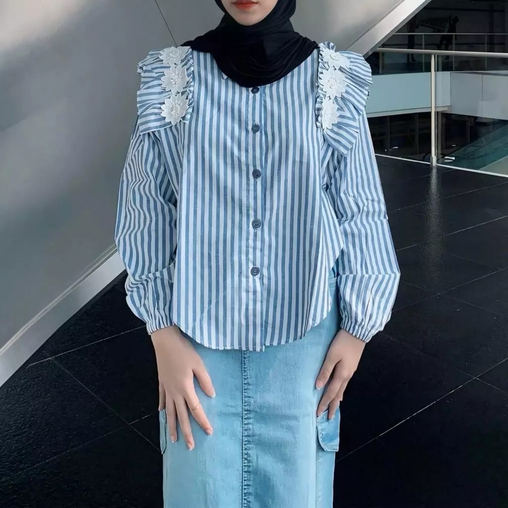 Kemeja Atasan Blouse Vallina Outfit - Lolita Top Atasan Wanita Muslim Katun Salur Premium OOTD Korean Style Casual Daily