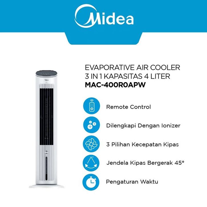 AC Portable Air Cooler Midea Tower Fan 4in1 MAC400R0APW 4L Pendingin Ruangan Original Official Store