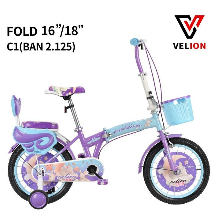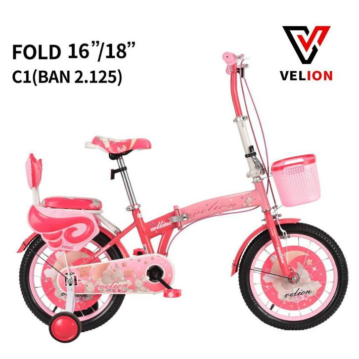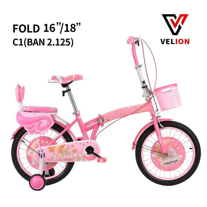 SEPEDA LIPAT ANAK VELION SIZE 16 DAN 18 DENGAN KRANJANG DAN BONCENGAN ANAK USIA 4 SAMPAI 9 TAHUN BONUS BOTOL MINUM