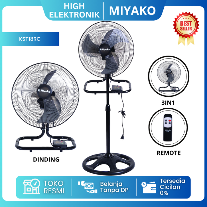 KIPAS ANGIN DINDING REMOTE MIYAKO KST18 RC 18 INCH 3IN1 KIPAS ANGIN BERDIRI DUDUK COSMOS MASPION SANEX GMC MURAH