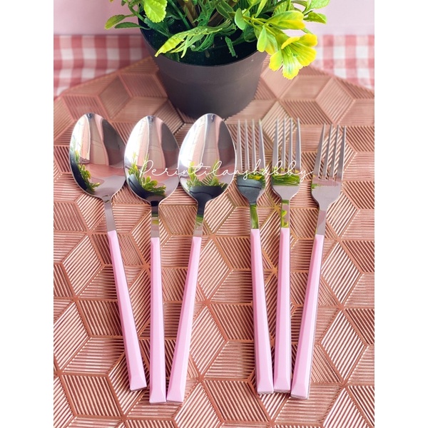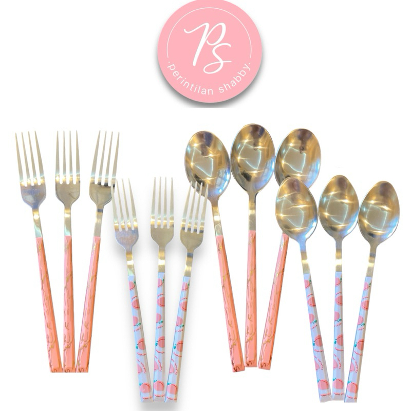 Sendok peach 3pcs, Garpu peach 3pcs, Sendok marble 3pcs, Garpu marble 3pcs
