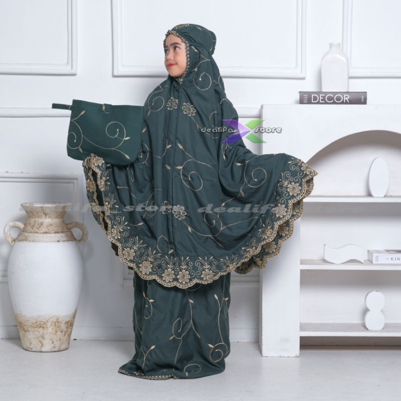 DEALIFA - Mukena Anak Usia 6-12 Tahun Gracella Exclusive Full Bordir Katun Premium Terbaru