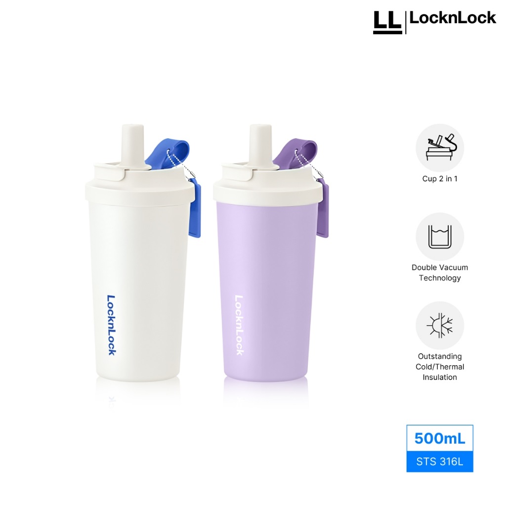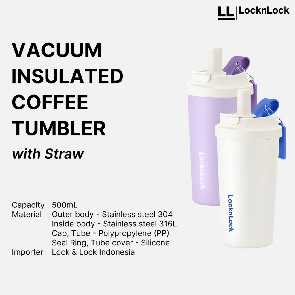 TUMBLER LOCKNLOCK VACUUM INSULATED COFFEE TUMBLER WITH STRAW 500ML LHC4334 BOTOL TUMBLER TAHAN DINGIN DAN PANAS