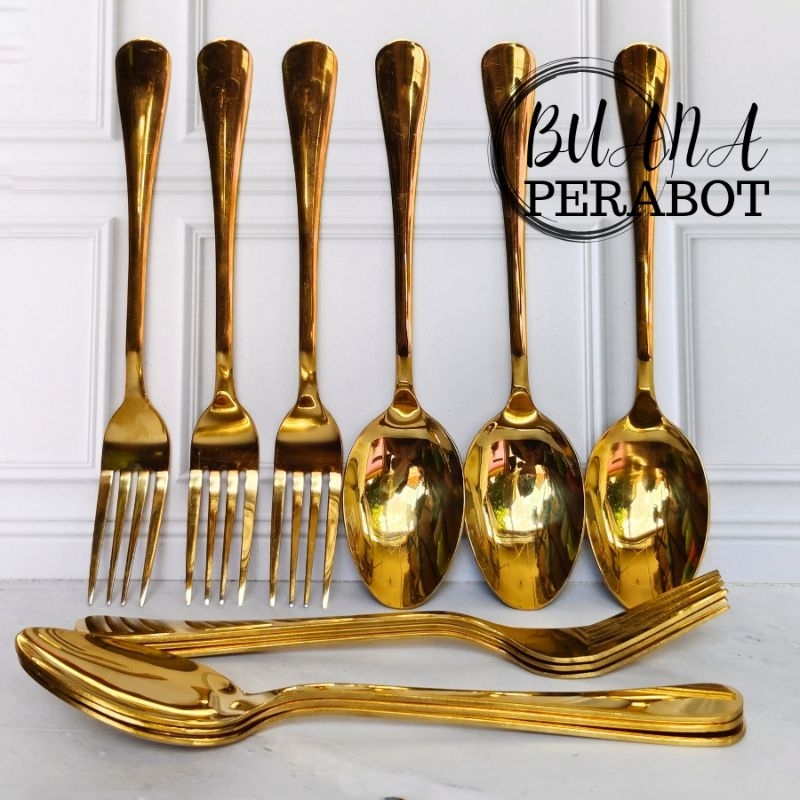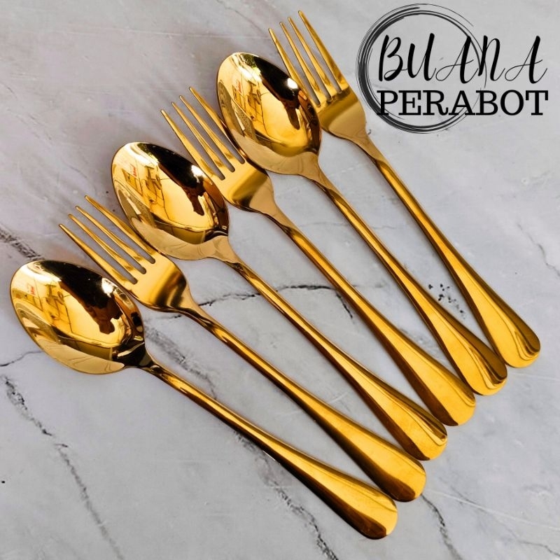 PROMO 1 SET SENDOK MAKAN EMAS DAN GARPU MAKAN EMAS TEBAL STAINLES / SENDOK RESTORAN SENDOK HOTEL
