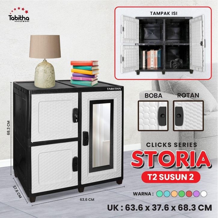PROMO Lemari Pakaian Plastik Lemari Plastik Tabitha Storia Lemari Plastik Jumbo 4 Susun Dengan Kunci Kaca Putih Tanpa Dp