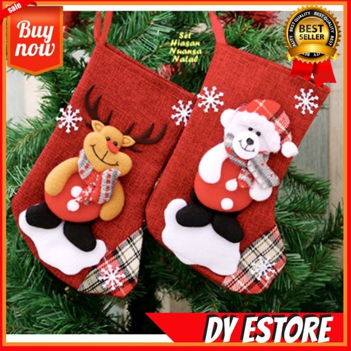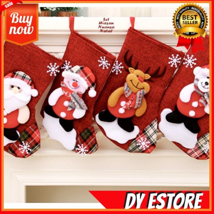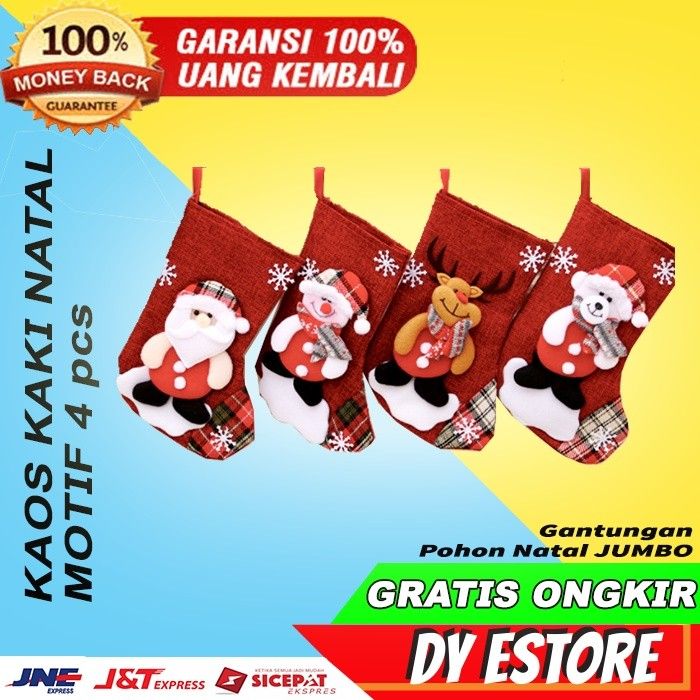 Set Hiasan Pohon Kaos Kaki 4pcs JUMBO E455 Pajangan Christmas Natal