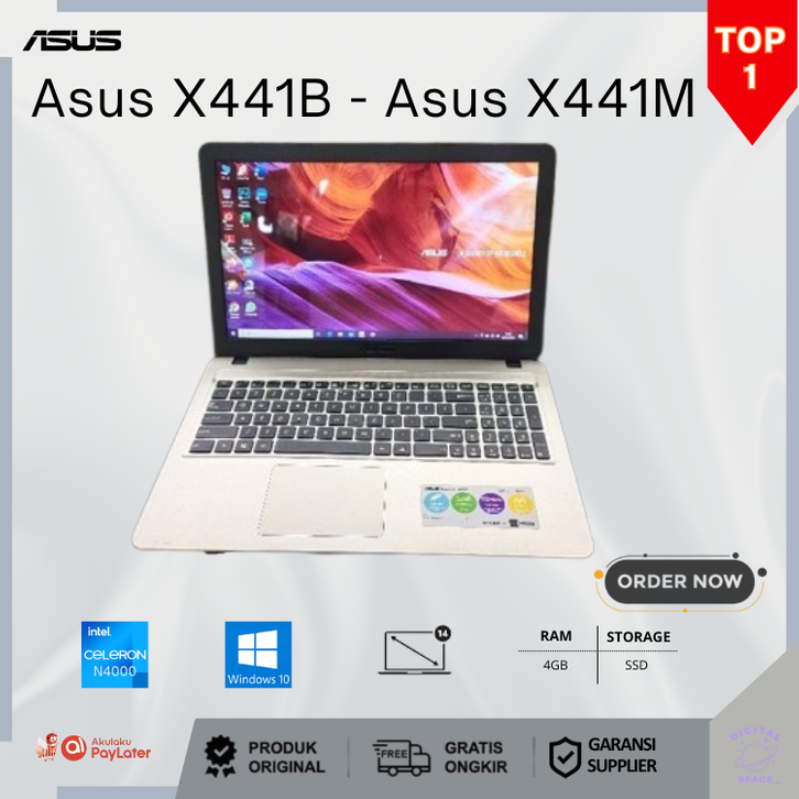 Laptop Asus X441B X441M RAM 4GB Generasi Baru SSD 128GB Laptop Windows 10 Intel Celeron Laptop Asus Second Garansi