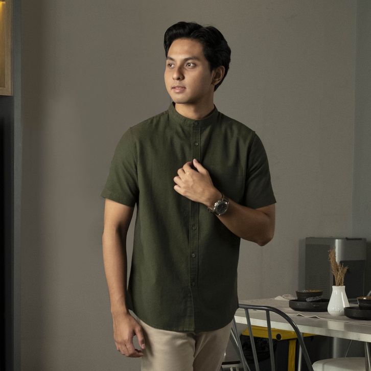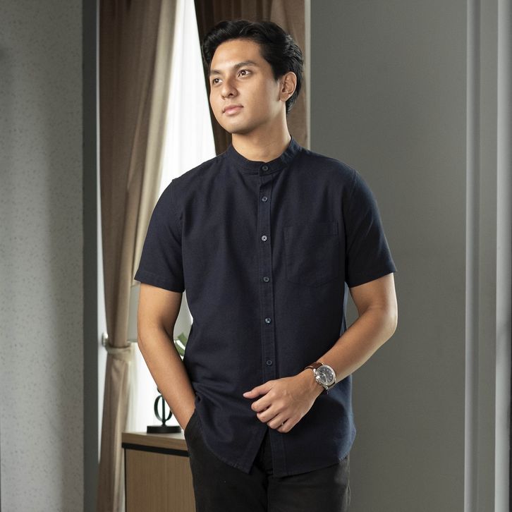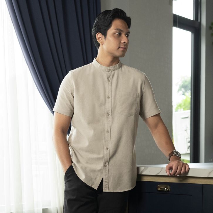 Baju Pria Kemeja Koko Rami Basic Polos Lengan Pendek