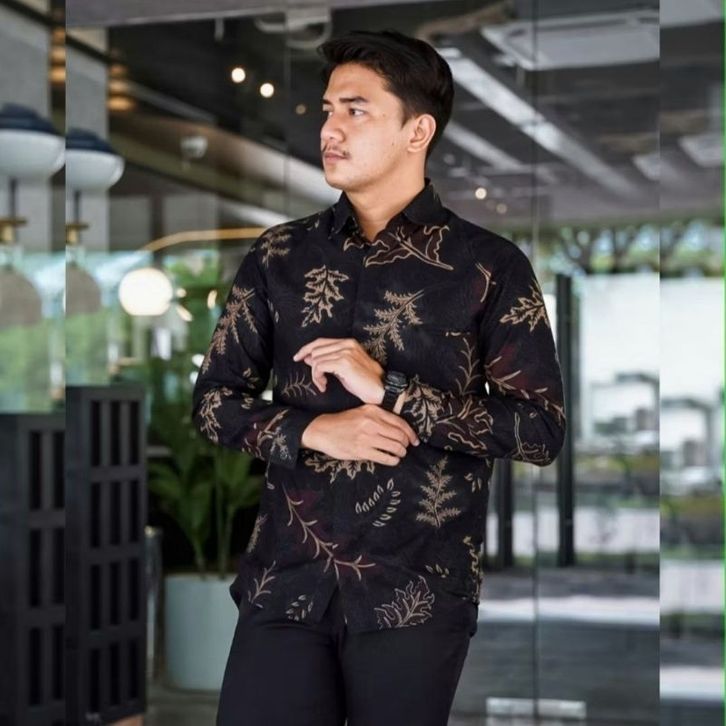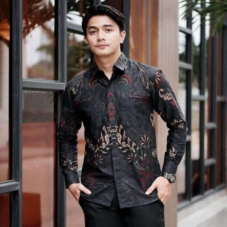 Baju Pria Kemeja Batik Lengan Panjang Bahan Katun
