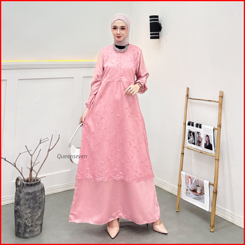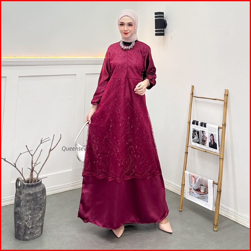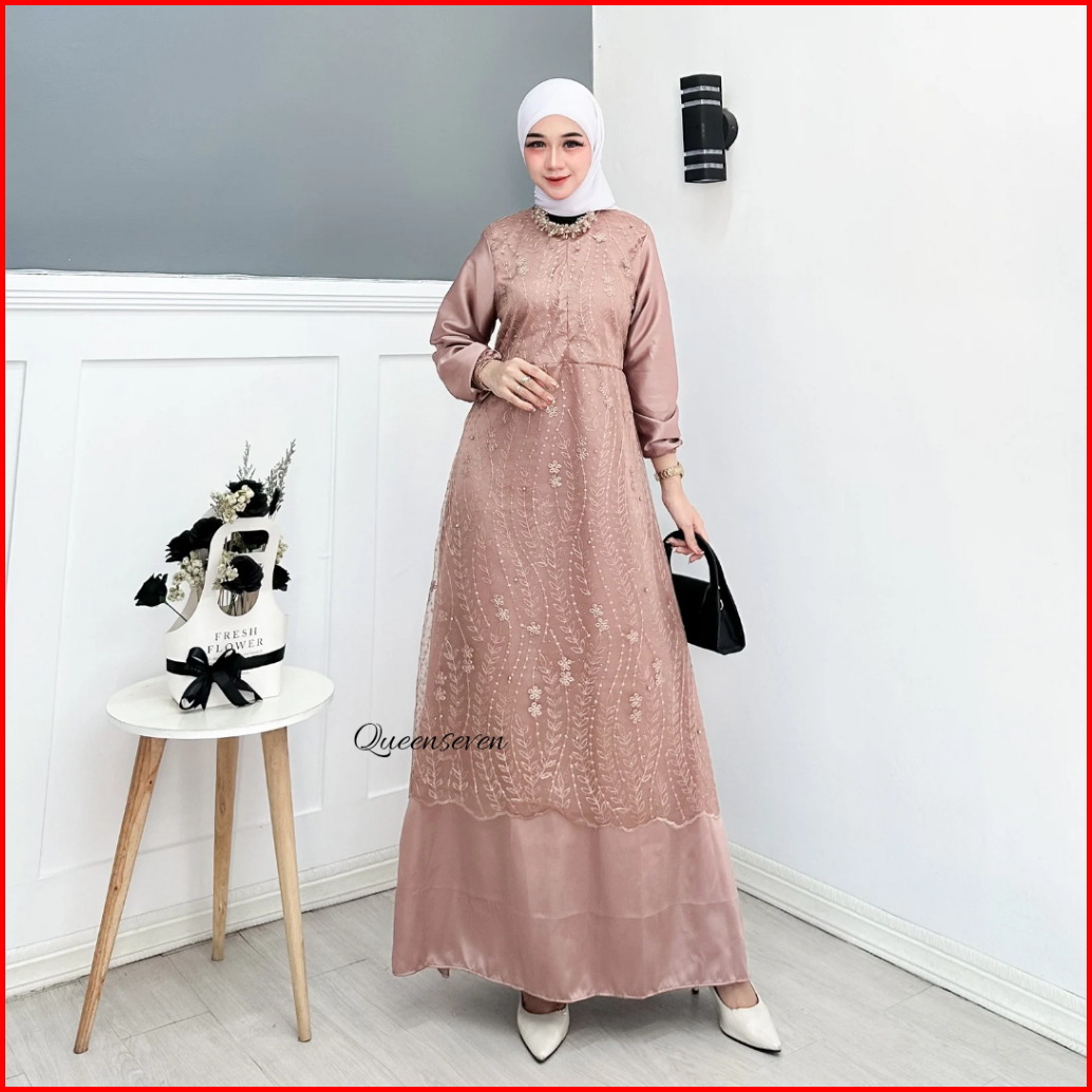 Gamis Brukat Tile Mutiara Gamis Wanita Terbaru Pake Tali Alma Dress