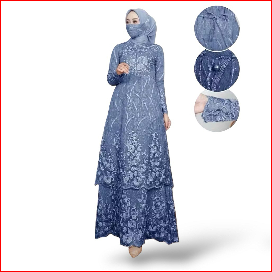 Gamis Busui Tile Tingkat Full Brukat Gamis Maxi Navira Maxi Tile Tingkat Free Masker Gamis Muslim Gamis Brukat Tile Gami