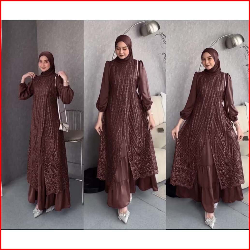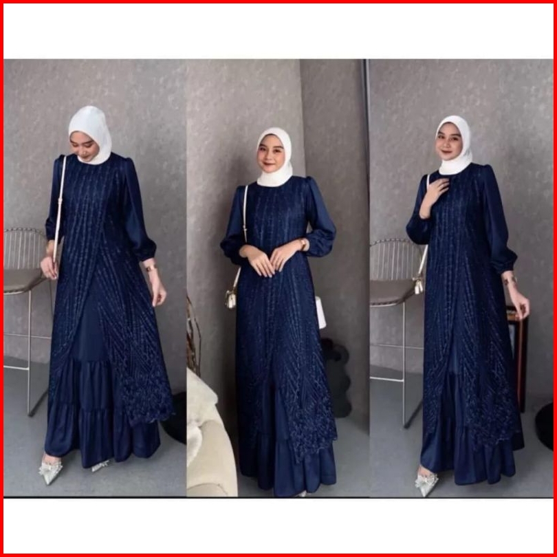 Olivia Dress Gamis Brokat Kondangan Terbaru Bahan Velvet Mix Brukat Tille Akar Gamis Pesta Mewah