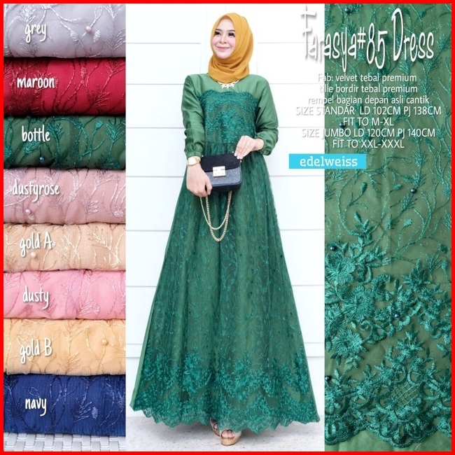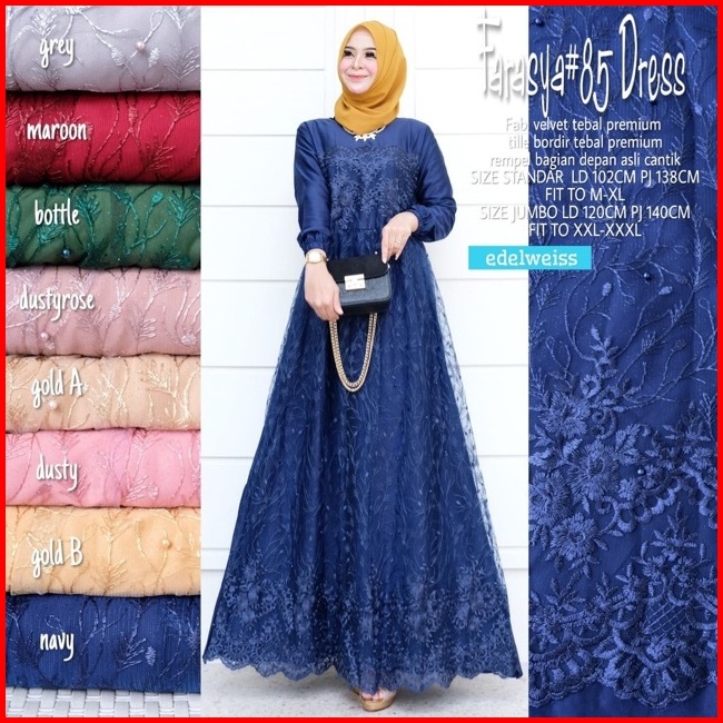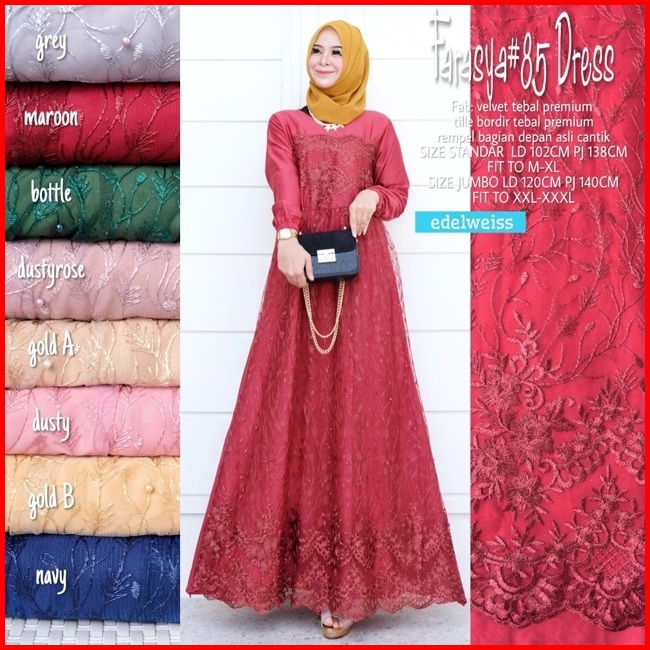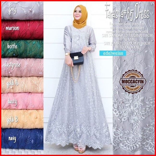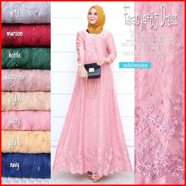 Farasya 85 Dress Brokat Tille Gamis Muslim Pesta Kondangan Best Seller Fit To Jumbo