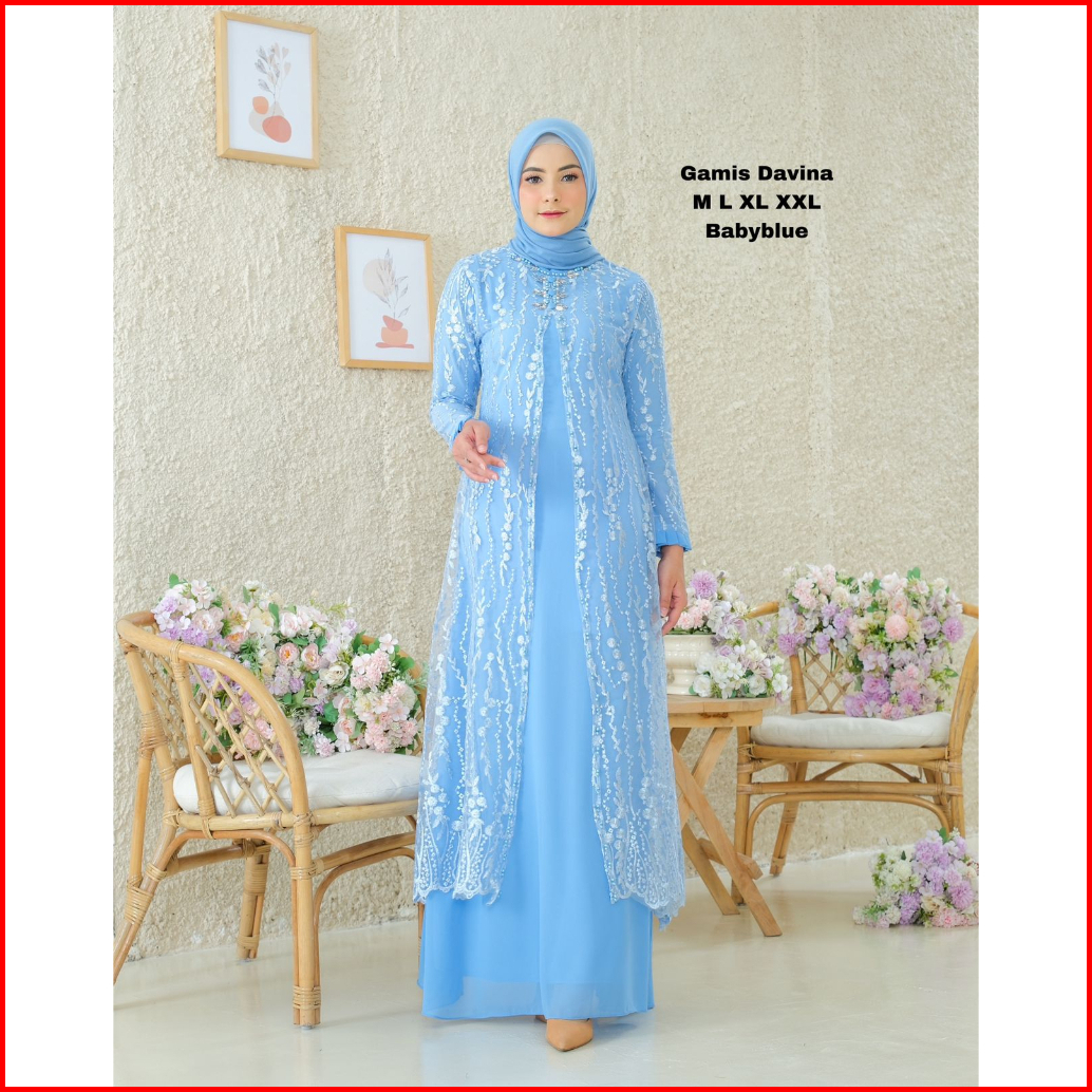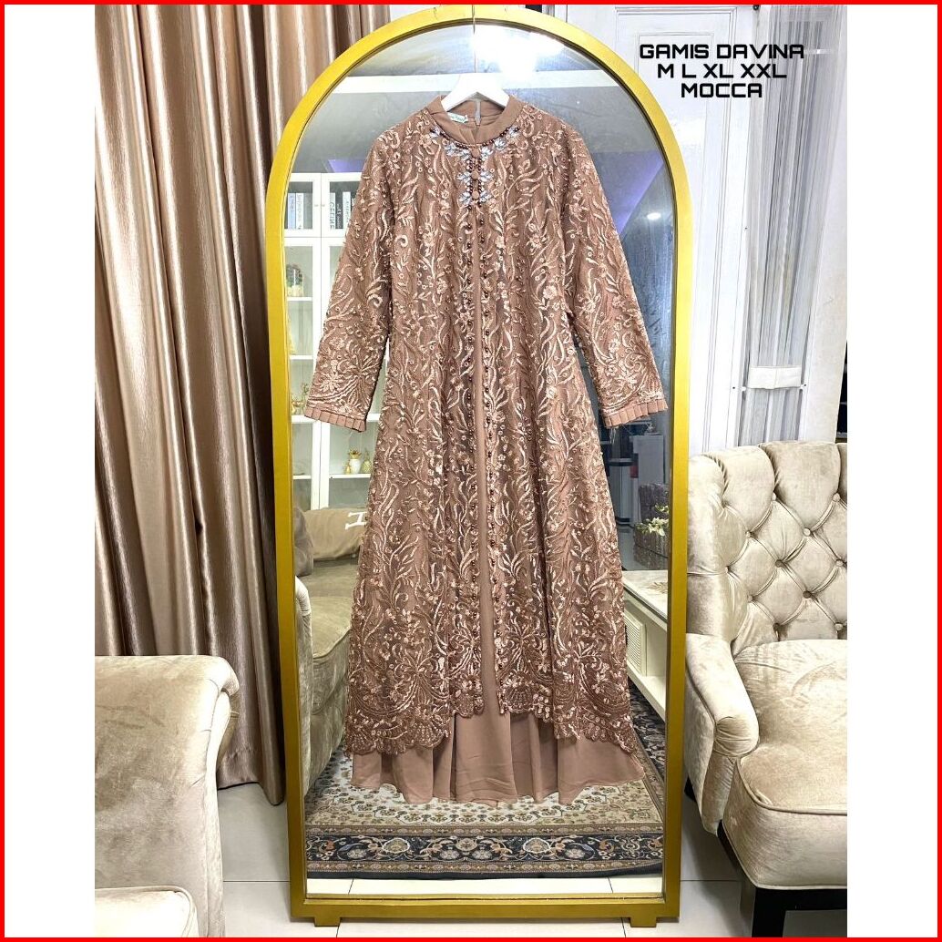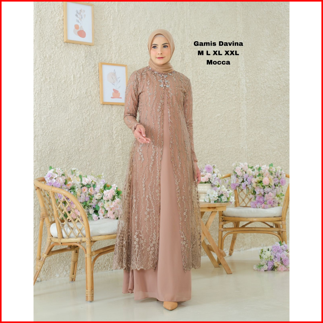Davina Dress Exclusive Terbaru Gamis Pesta Maxi Brukat Kondangan Lamaran Tunangan Kekinian
