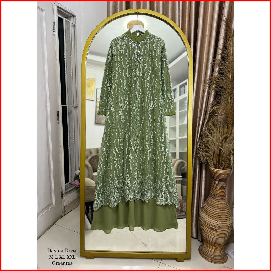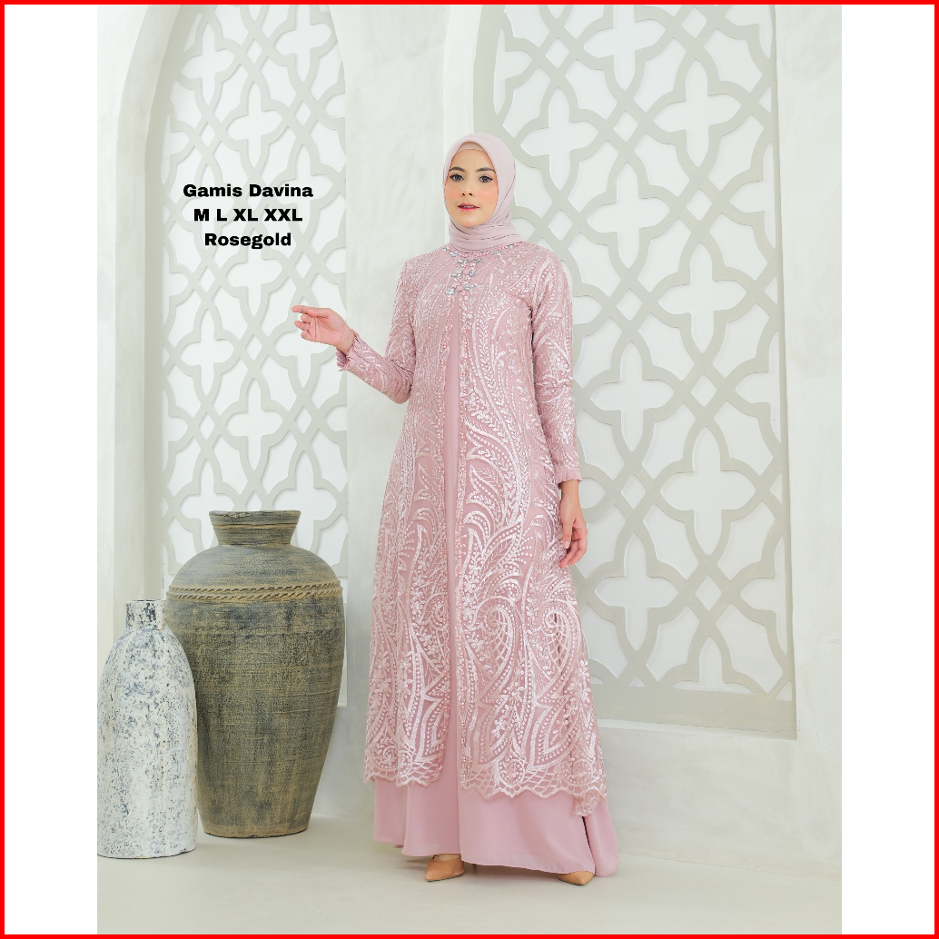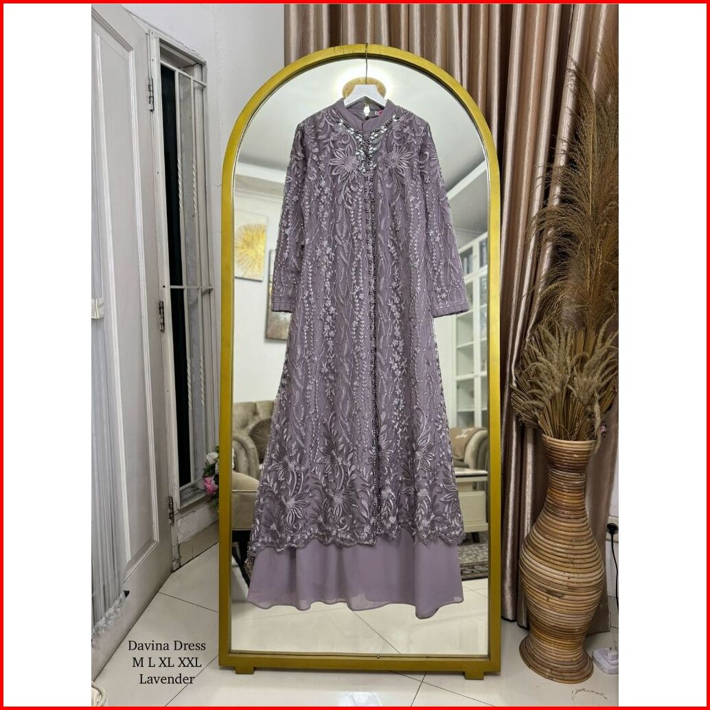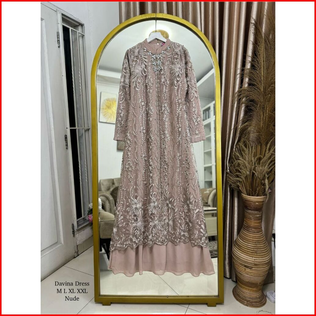 Davina Dress Exclusive Terbaru Gamis Pesta Maxi Brukat Kondangan Lamaran Tunangan Kekinian