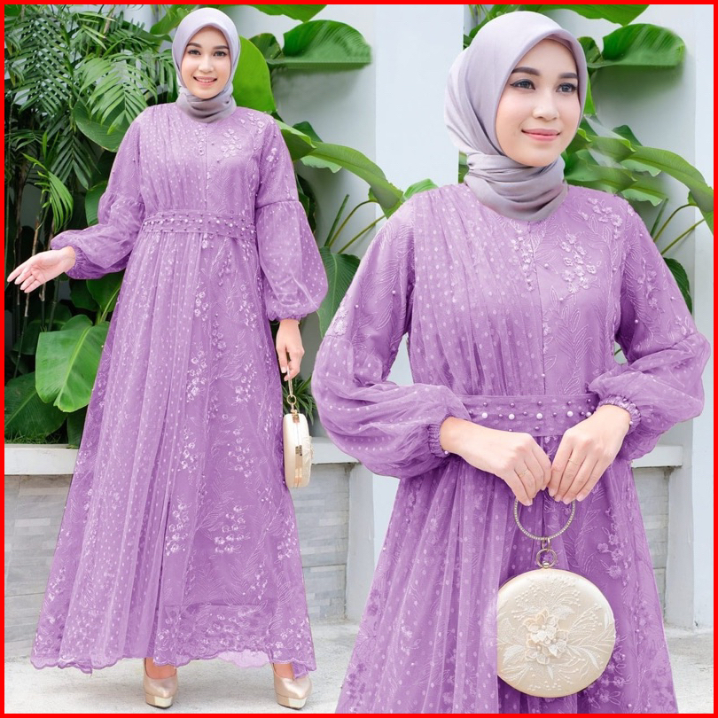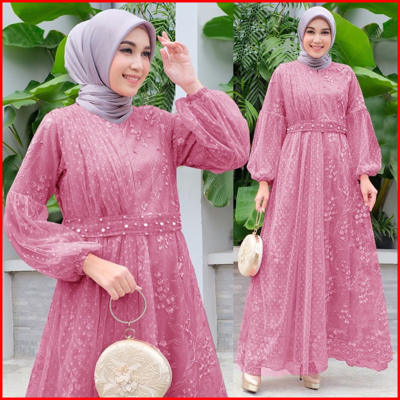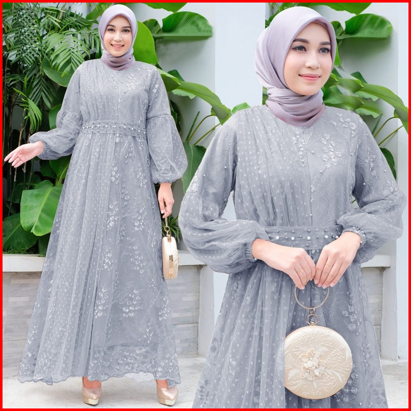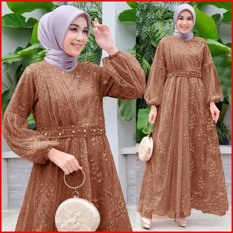 Maxi Adila Gamis Pesta M-xxxl Busui Kondangan Gamis Busui Gamis Brukat Tile Mutiara Couple Dress Muslim Maxi Kondangan D