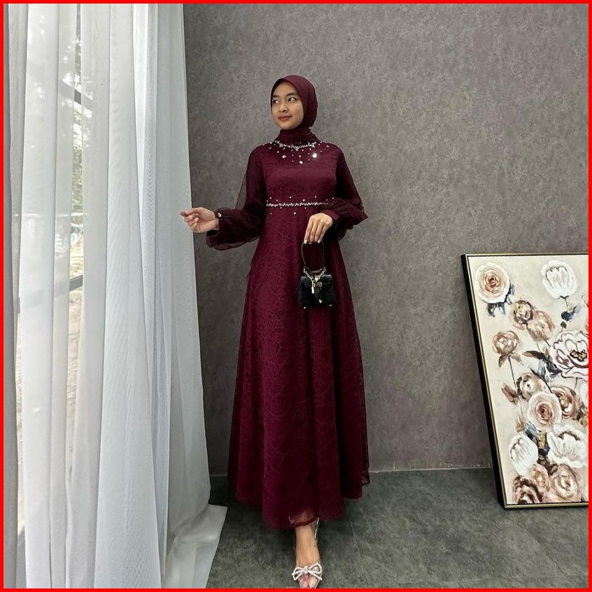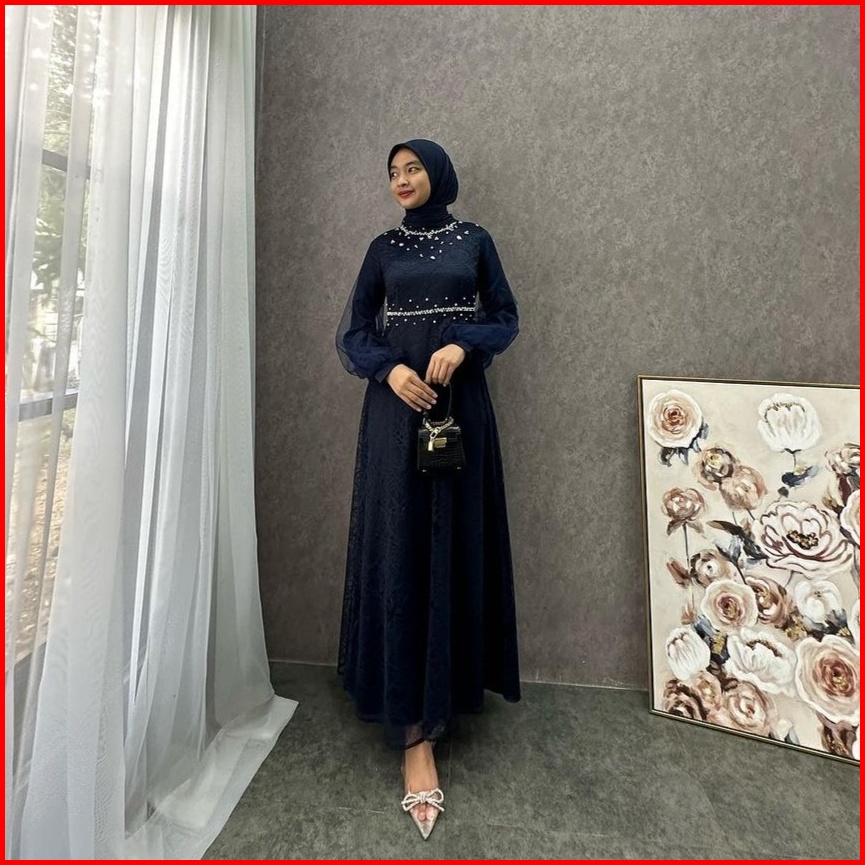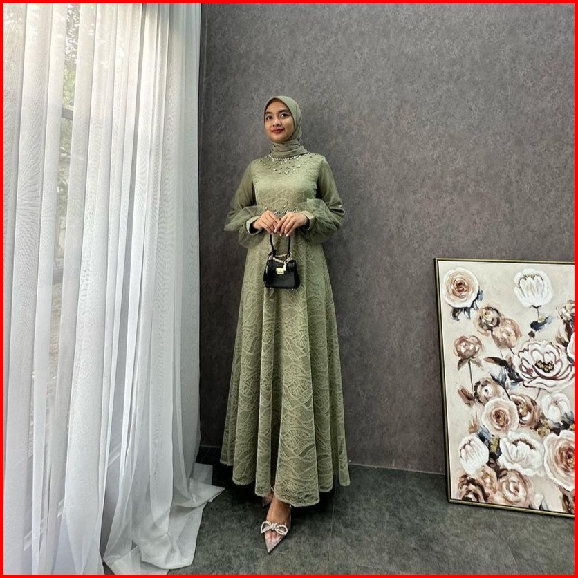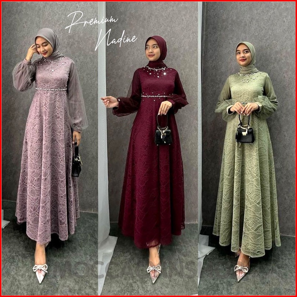 Premium -nadine Dress- Exclusive Gaun Pesta Kondangan Muslim Baju Lebaran Brukat Mewah Elegan
