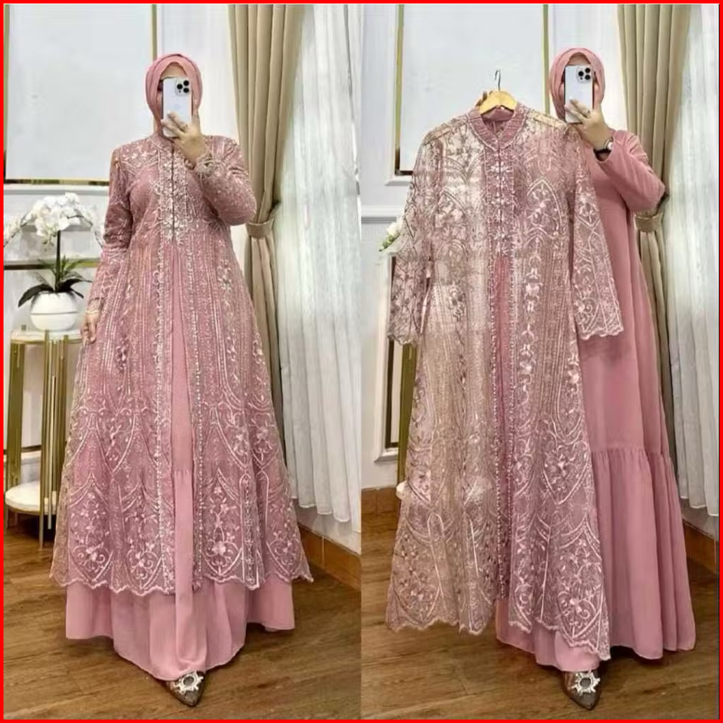 Baju Gamis Pesta Brukat Wanita Kombi Ceruty Nadya Dress Kondangan Brokat Tille Premium Mewah Elegan