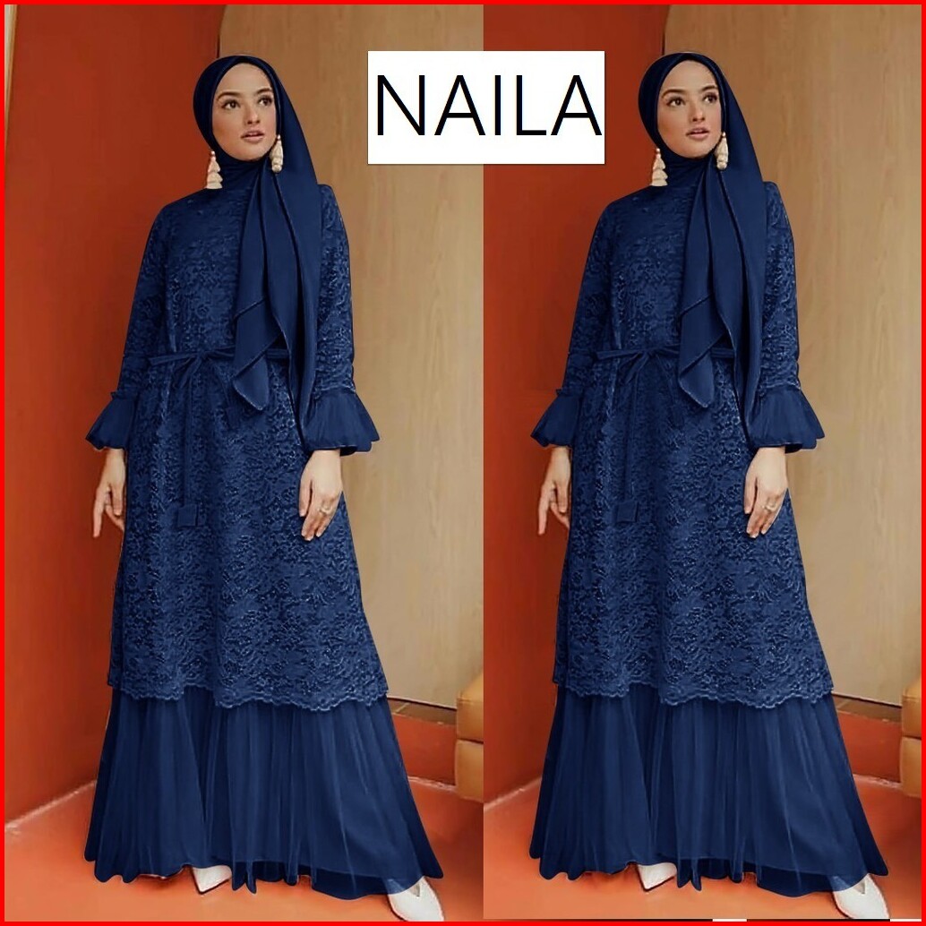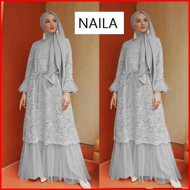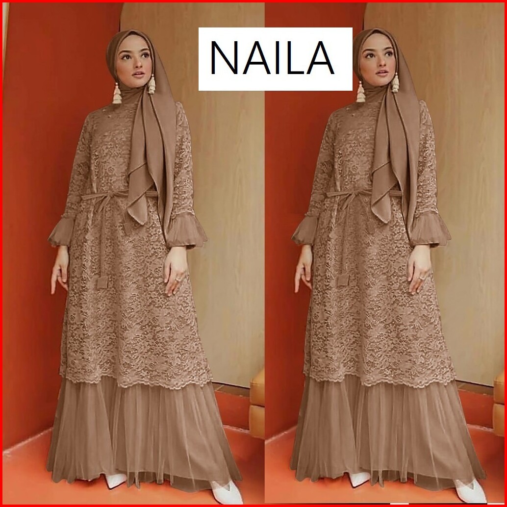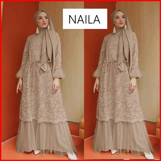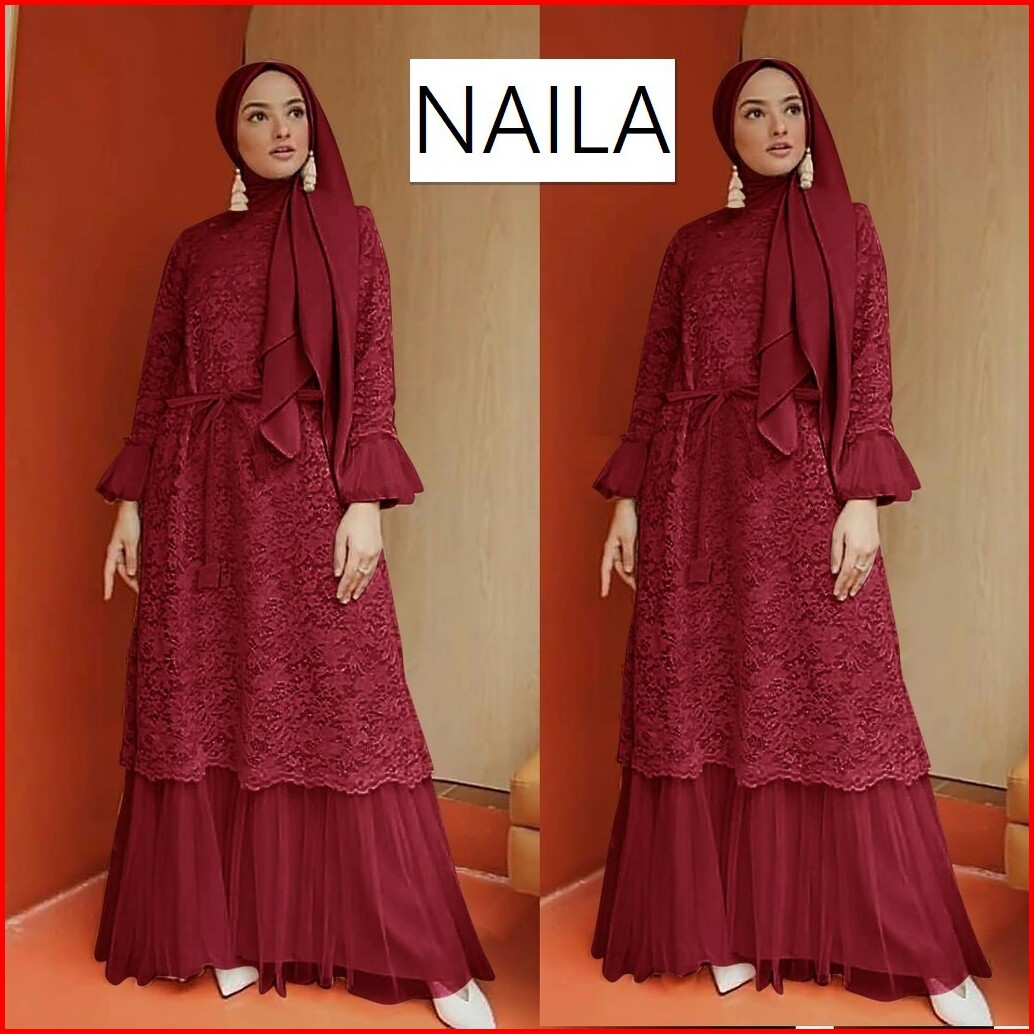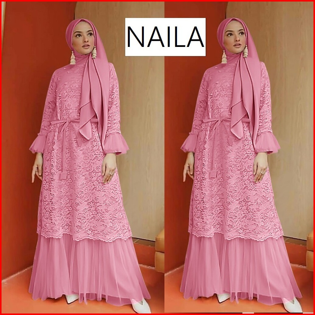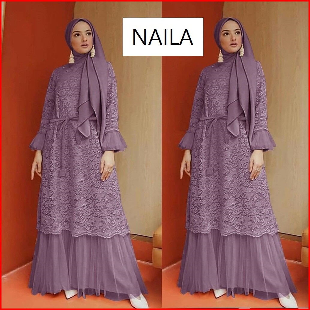 Gamis Muslim Naila Size S-m L Xl Xxl Gamis Brukat Timbul Gamis Brukat Seragam Gamis Brukat Tile
